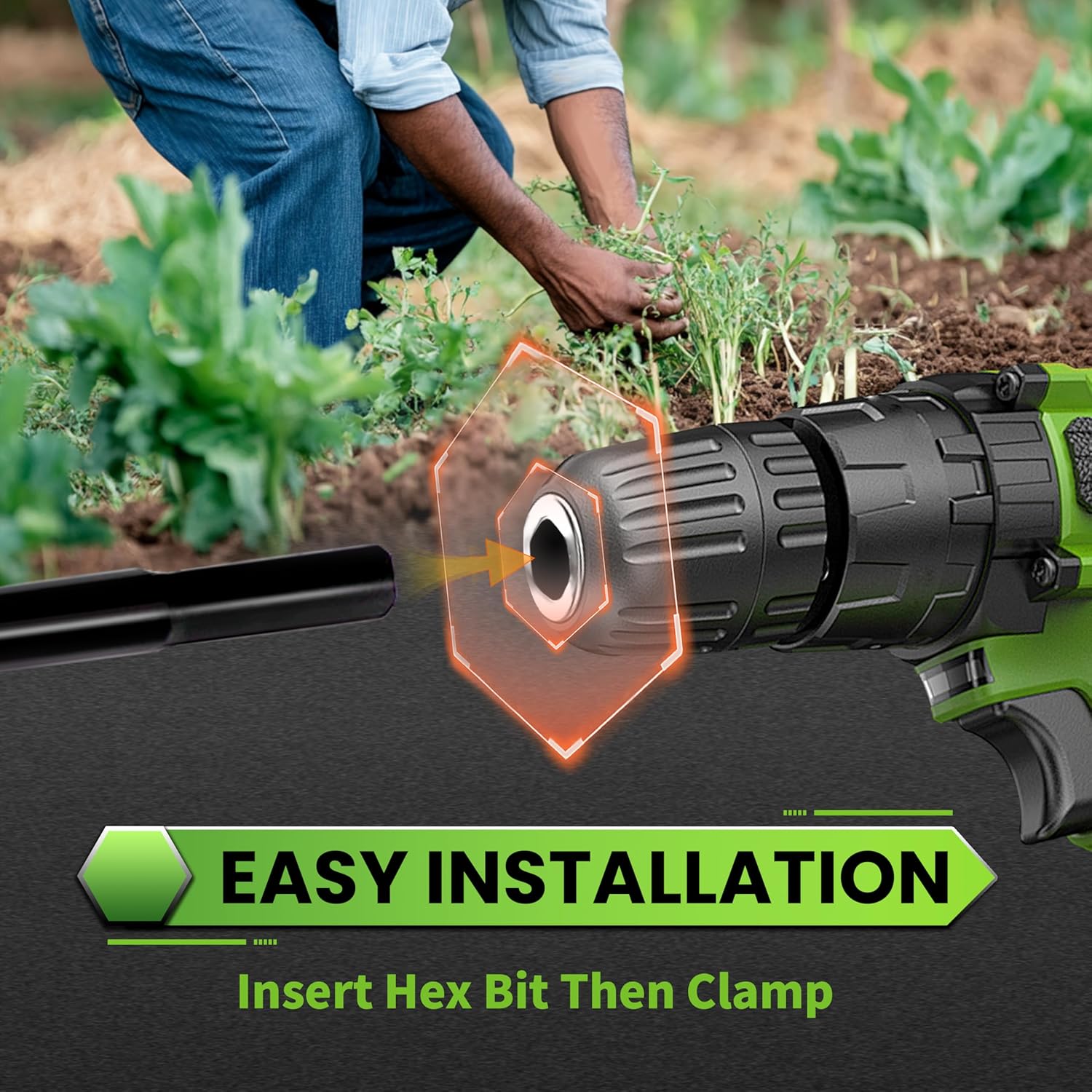 - Scope of Application - 18V or larger planting auger for cordless drill recommended. Suitable for 3/8 inch hex drive electric drill. Note: Not for use with large or solid rock.