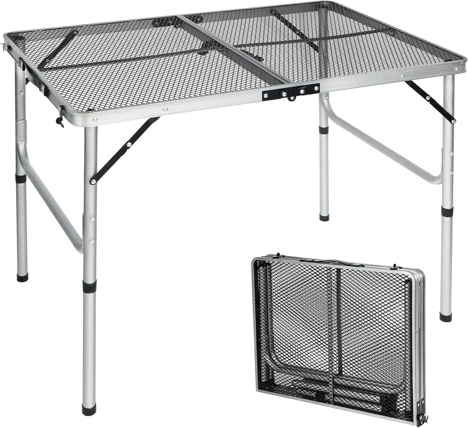 - 2 Adjustable Heights: RedSwing Aluminum Folding Grill Table is 36"x24"/91cmx60cm, height is 15"/38cm in low, 28"/71cm in high. Pack size is 24"x3"x18"/60cmx 7cmx45cm when folded.