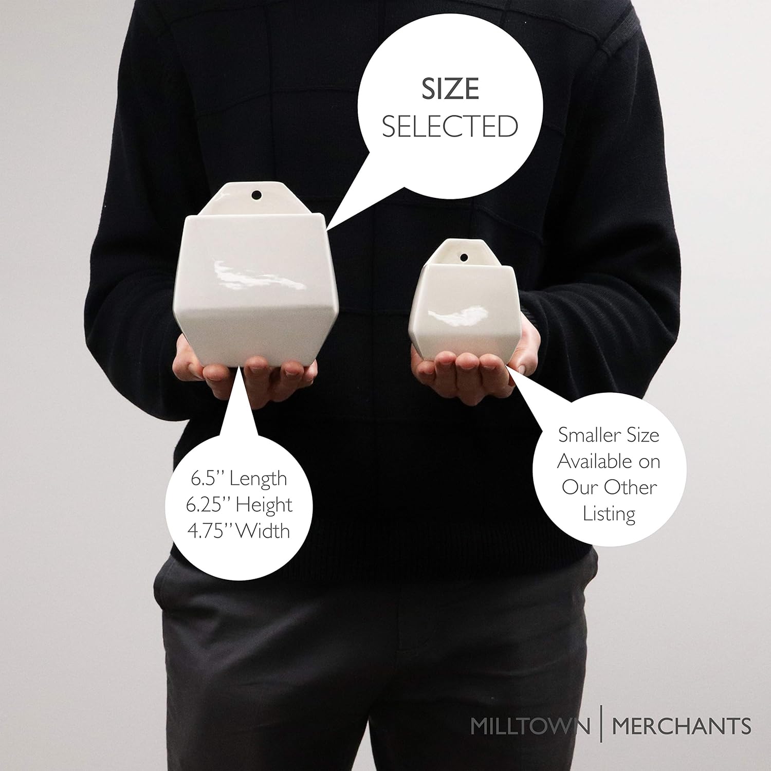 - MILLTOWN MERCHANTS HANGING PLANTER - The simplistic design of each Milltown Merchants hanging planter infuses minimalist and contemporary styling to create the perfect floating vase. Our beautiful white and black floating planters offer the ideal contrast for showcasing succulents, greenery, and small plants.