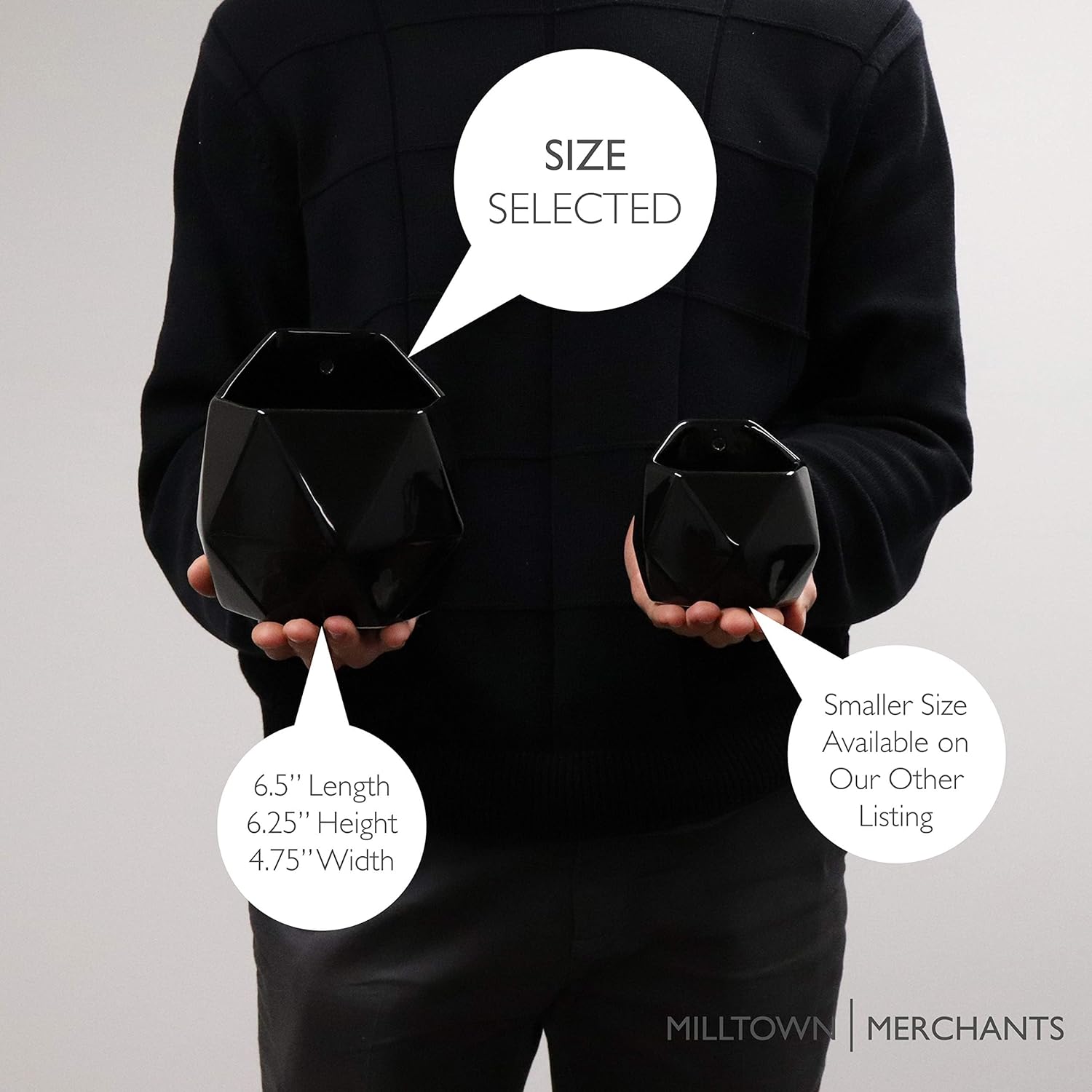 Milltown Merchants Succulent Wall Planters - Ceramic Wall Mounted Planters - Succulent Plant Pots - Hanging Vases (1 Pack/Geometric/Black)