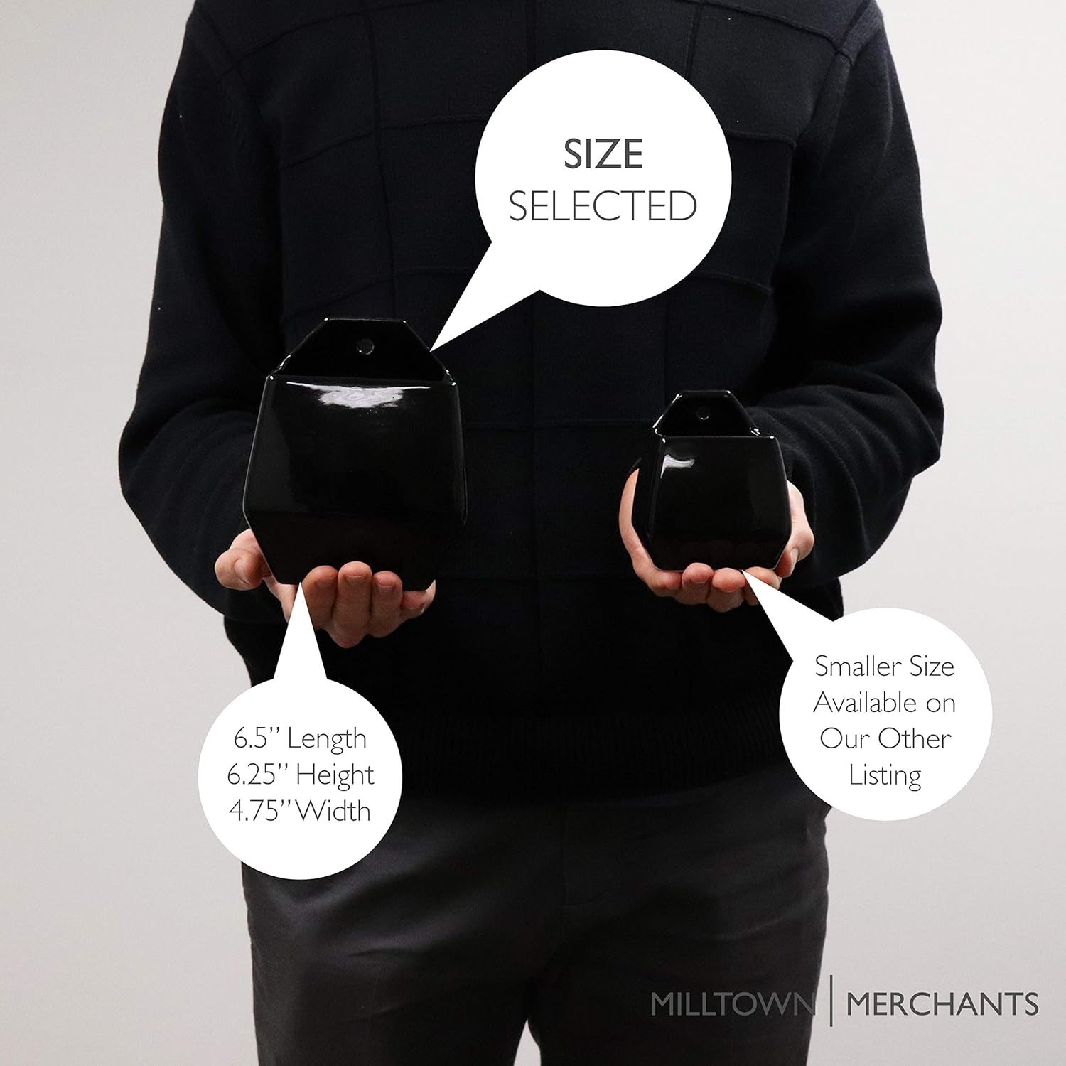 Milltown Merchants Succulent Wall Planters - Wall Vases - White Ceramic Wall Mounted Planters - Succulent Plant Pots - Hanging Vases for Living Wall (1 Pack/Contemporary/Black)