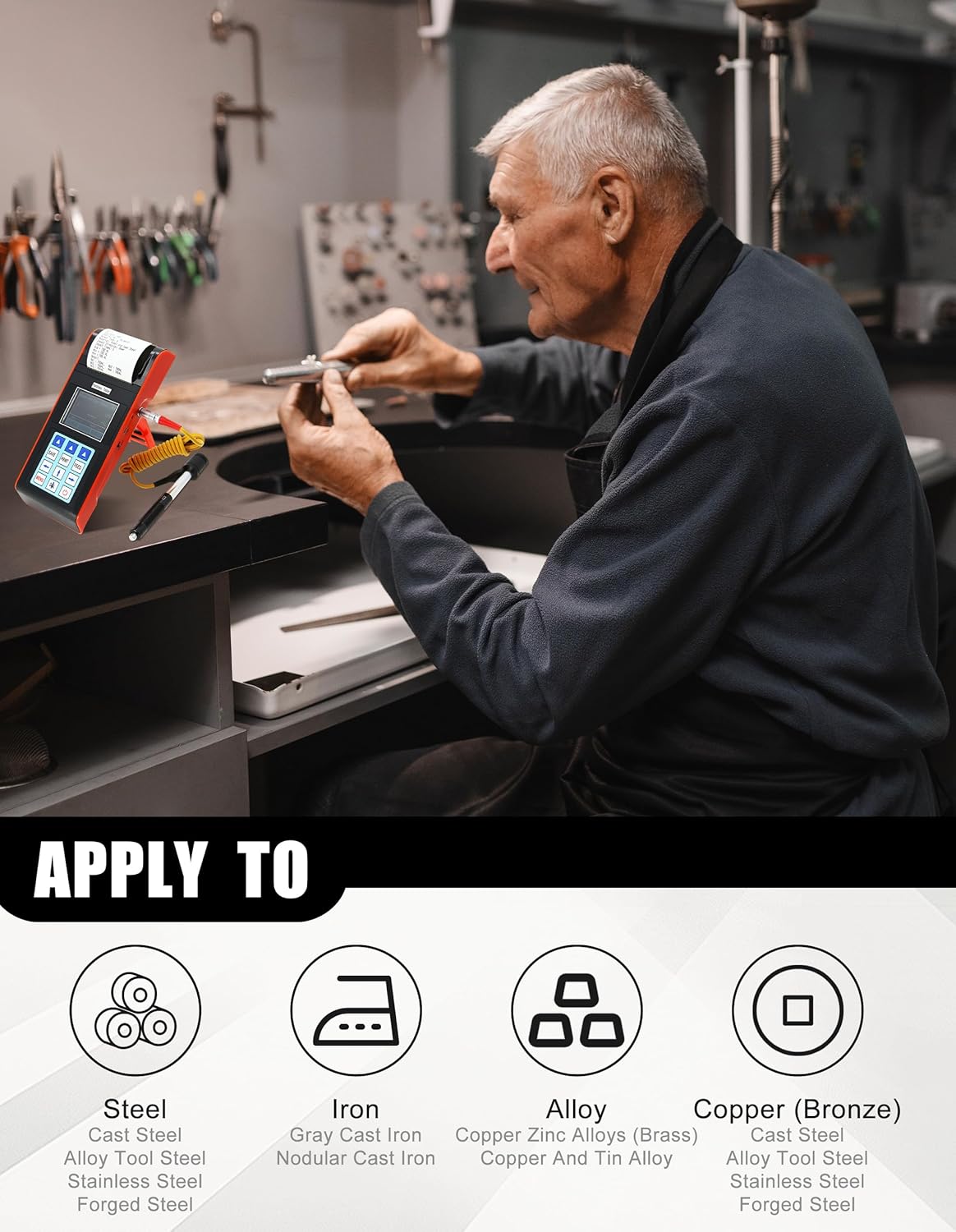 - 【WIDE MEASURING RANGE】It can measure the hardness of most kinds of metallic materials. Direct display of hardness scales HRA, HRB, HRC, HV, HB, HS, HL.