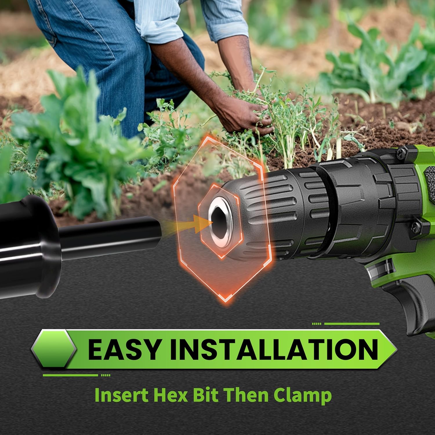 - Easy to Use: You can easily use this garden auger even don't know the ABCs of planting. All you need to do is attach the auger bit to a standard 3/8” hex bit drill and then start digging. In just a few seconds, a perfect drill will be born!