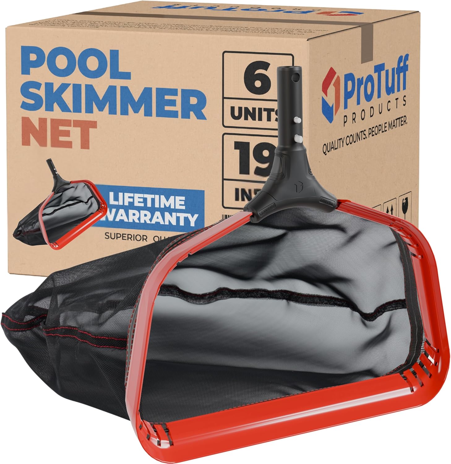 - LESS WASTE WITH DURABLE, MODULAR DESIGN – Don’t throw away your ProTuff swimming pool net! Quick & easy 2-minute handle, net and/or rim replacements minimize landfill waste. Upgraded nylon net, rim & handle durability means many sessions of reliable skimming & capture of leaves, bugs, and debris. ProTuff is the "eco-friendly" pool cleaning net without the typical eco-friendly price-hike.