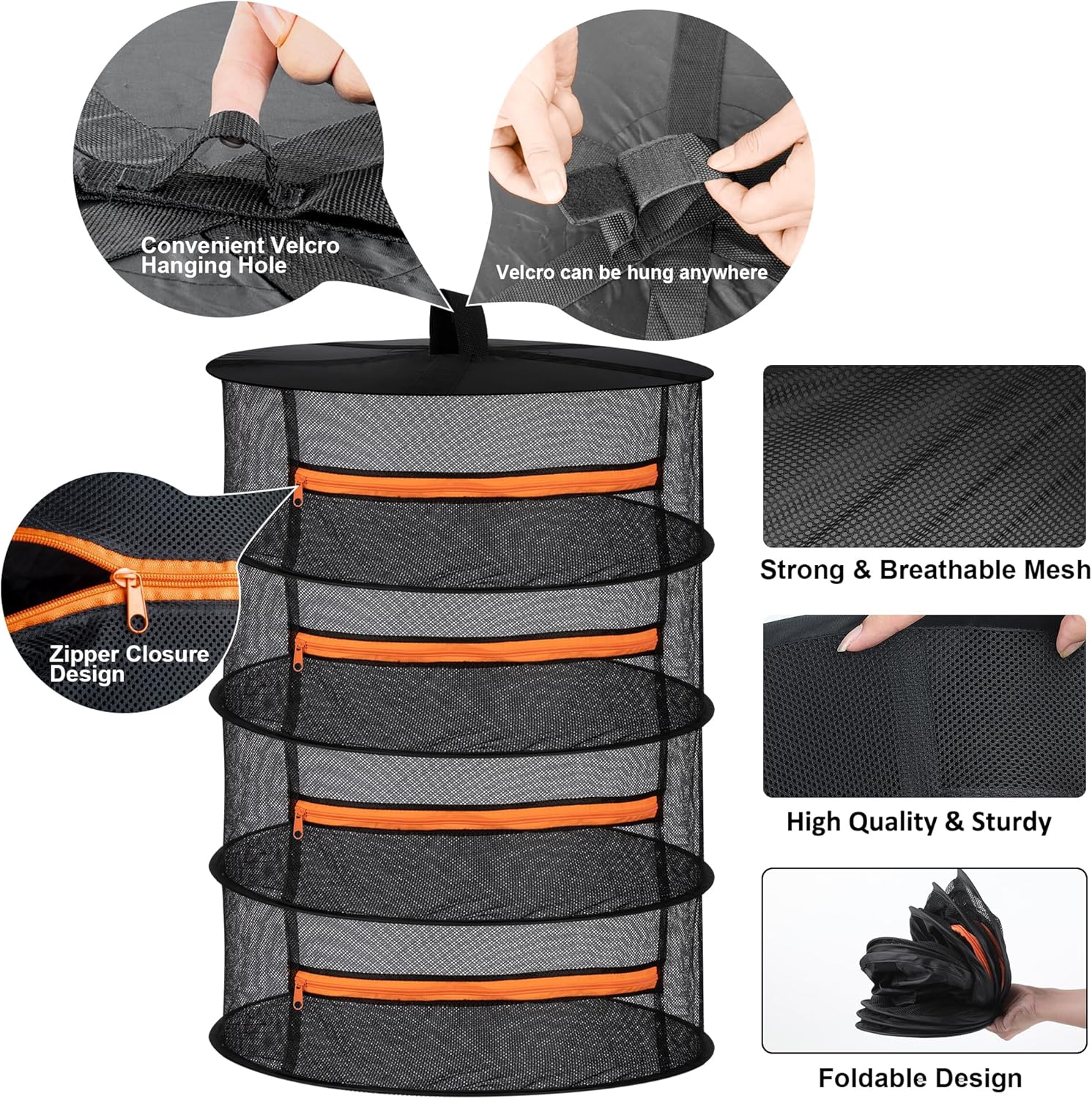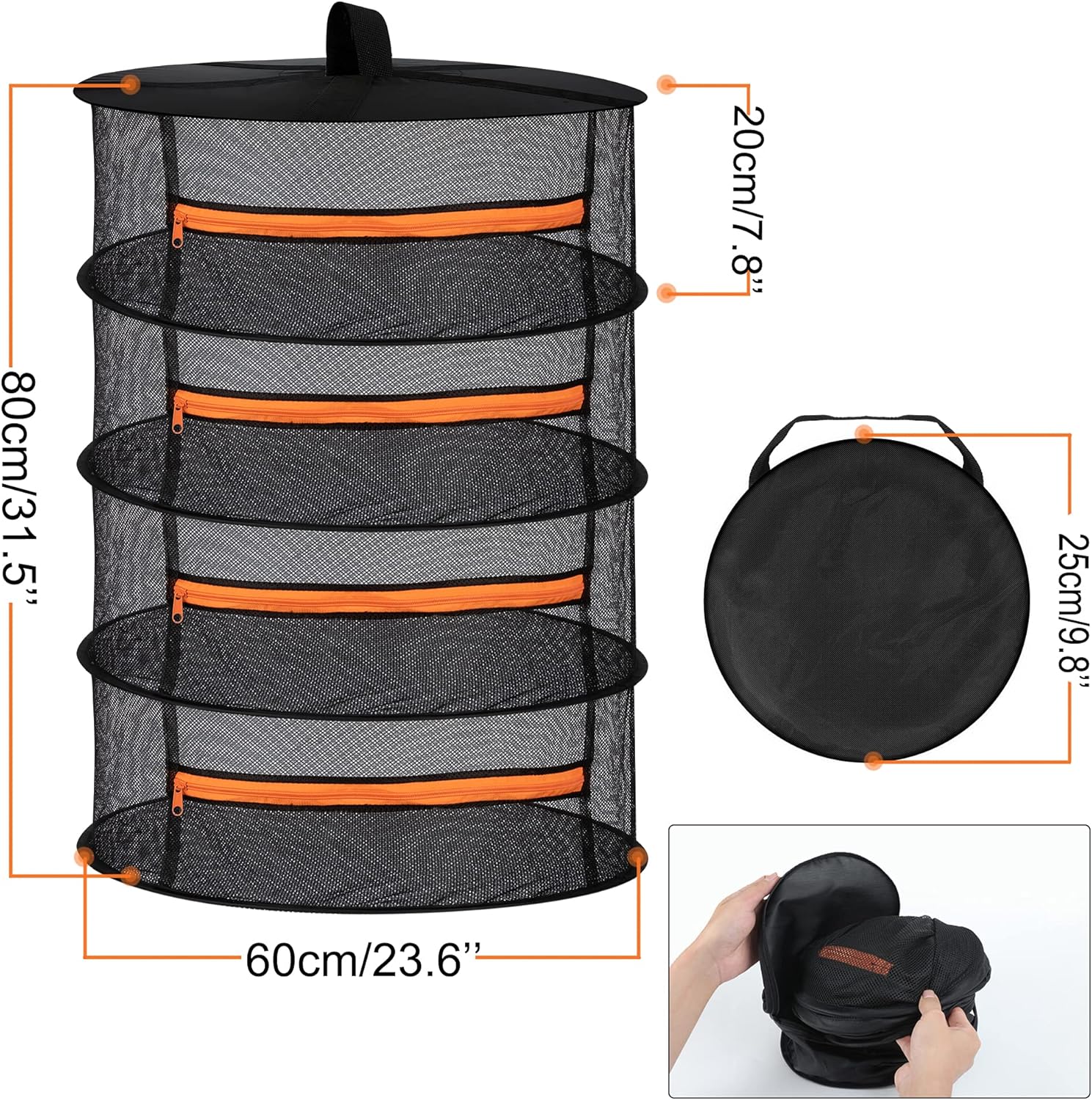 Desy & Feeci Herb Drying Rack-2ft Diameter 4 Layer Folding Mesh Hanging Basket Dryer Net with Zippers for Seeds Flowers Buds Plants Garden Outdoor Bumper Harvest(D24xH31 inch)