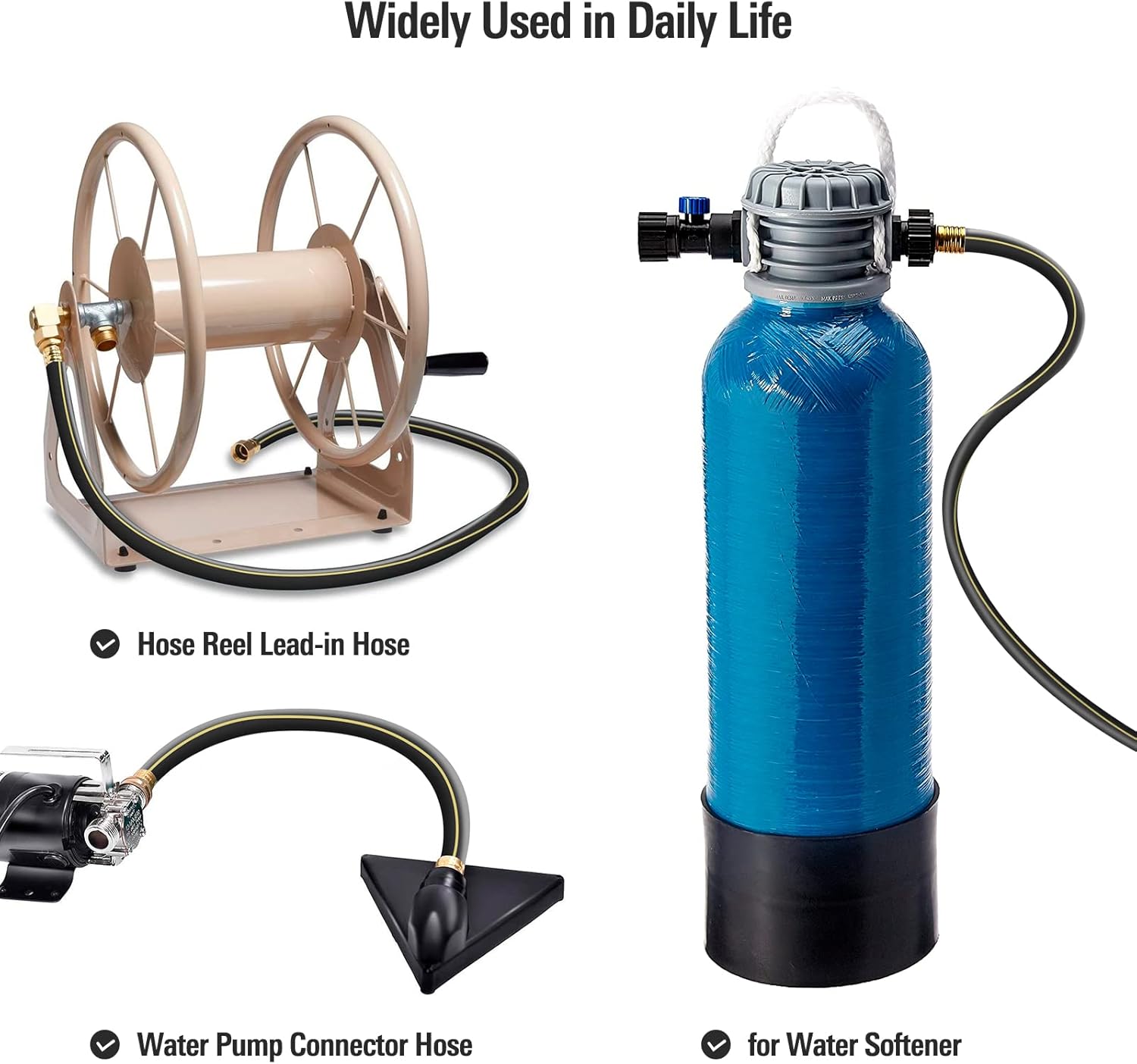 - Multifunctional: Available in various sizes, this product is ideal for a wide range of applications, including hose reel carts, RVs, dehumidifier hoses, laundry tub hoses, water softeners, washing machines, rain barrel drain hoses, short water hoses for pool cover pumps, and drain hoses for fishbowls and sinks; It effectively directs water to your bucket while minimizing splashing and mess