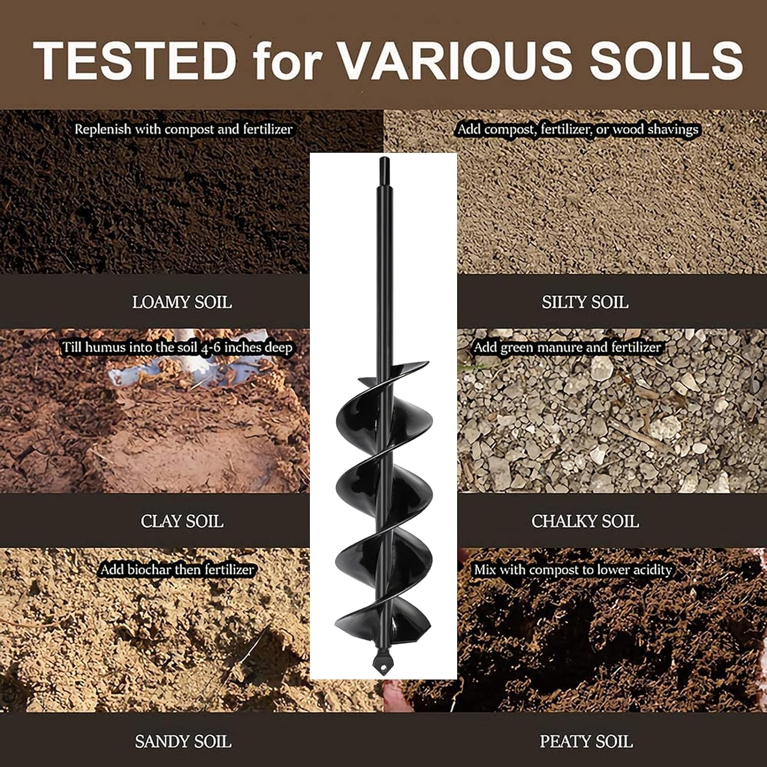 - Various Applications: our SOLID spiral hole drill is the best landscapers’ choice for increasing efficiency when planting bulbs, potted plants, vegetables, flowers, bare root trees and shrubs, tilling soil or planter boxes, mixing seed, soil, fertilizer, paint, or batches of mortar mix for hardscapes; Our earth drill bit is also effortlessly dig post holes or even bring it on vacation to drill a hole in sand to anchor your beach umbrella.It will be a good helper for you.