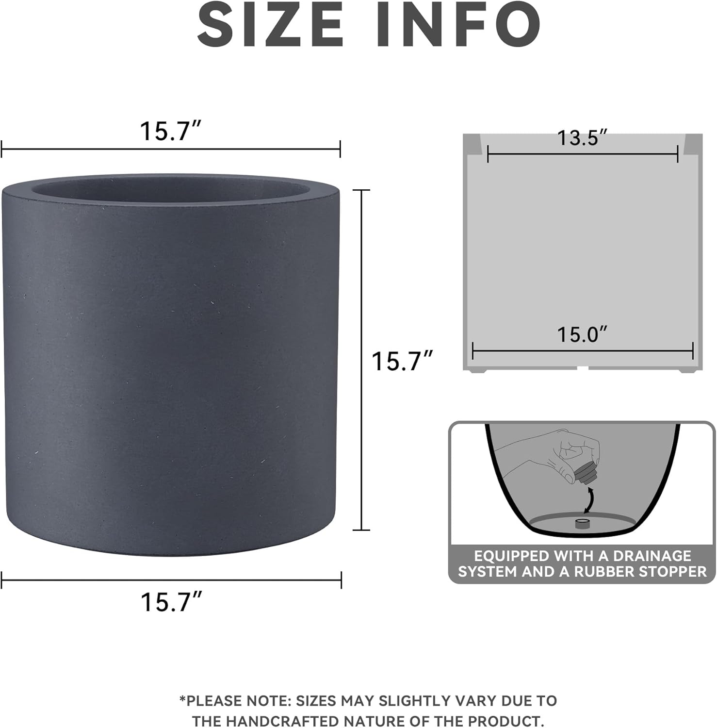 Kante 15.7" Dia Round Concrete Planter, Modern Style Large Cylindrical Plant Pot with Drainage Hole and Rubber Plug for Indoor Outdoor Patio, Charcoal