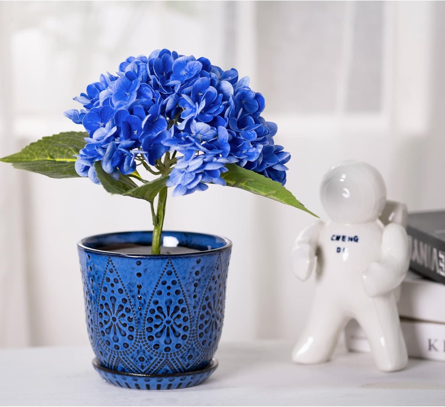 Gepege 6 Inch Beaded Ceramic Planter Set of 2 with Drainage Hole and Saucer for Plants, Indoor-Outdoor Large Round Succulent Orchid Flower Pot (Blue, for Inner-pots not Larger Than 5 Inch)