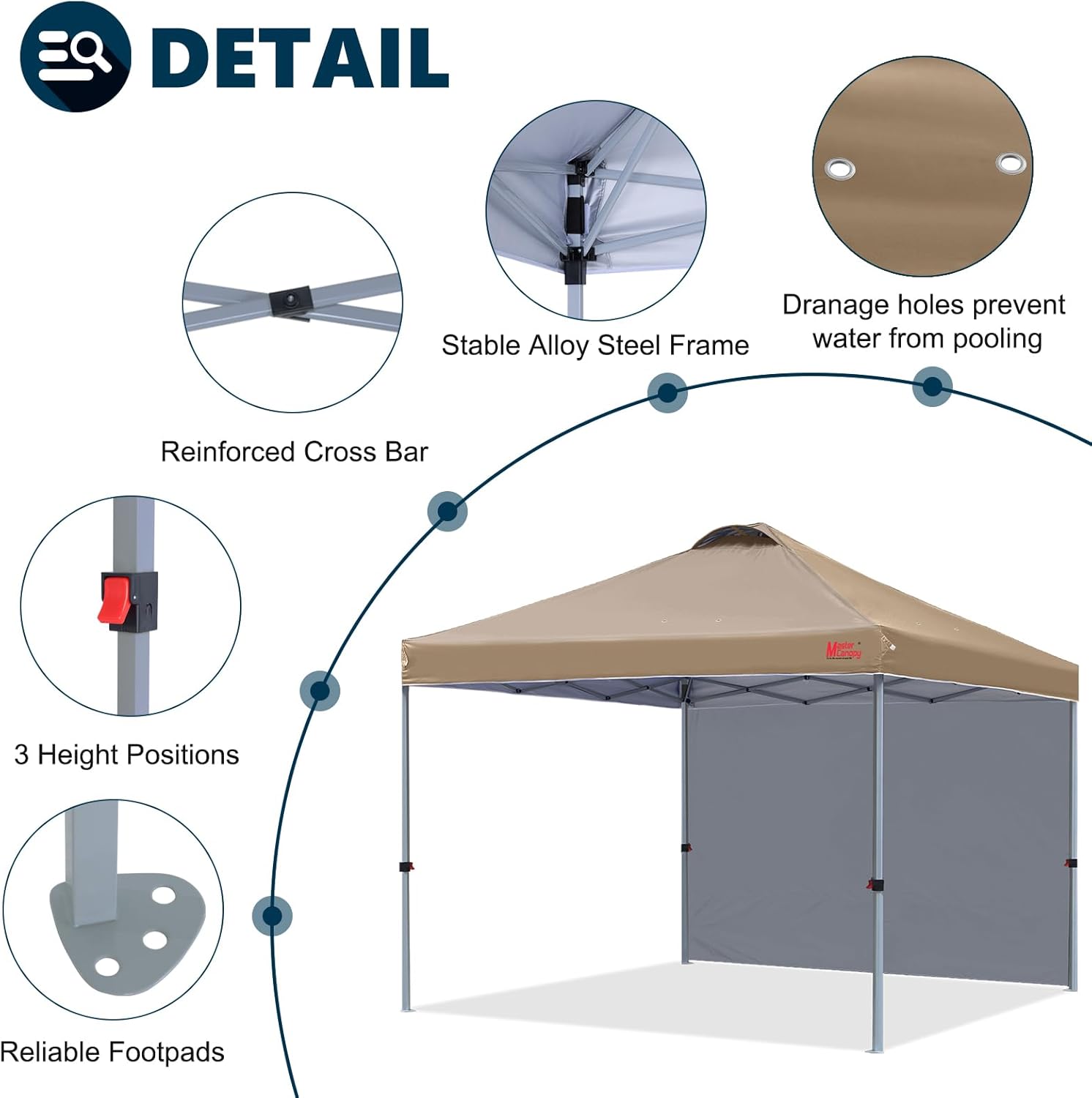 MASTERCANOPY Durable Pop-up Canopy Tent with 1 Sidewall (10'x10',Khaki)