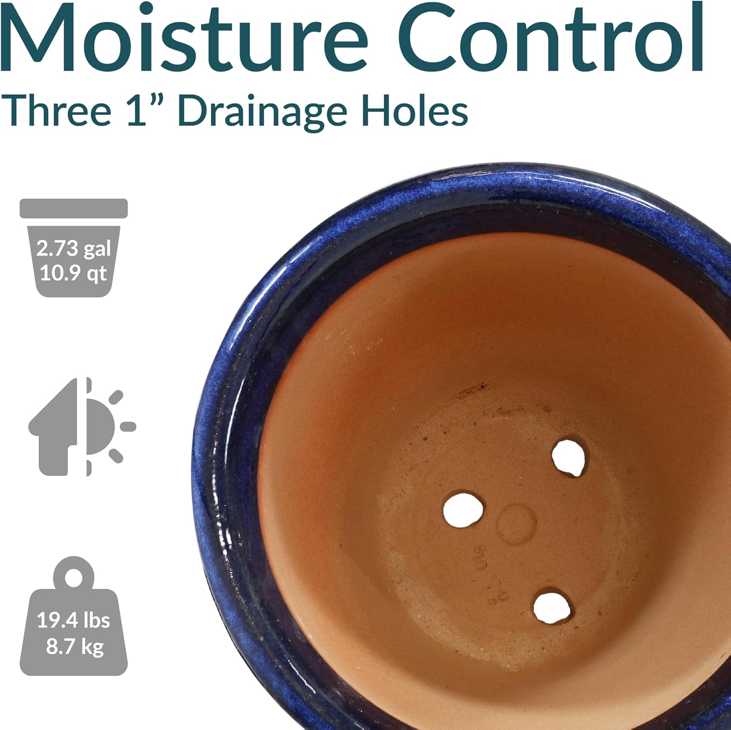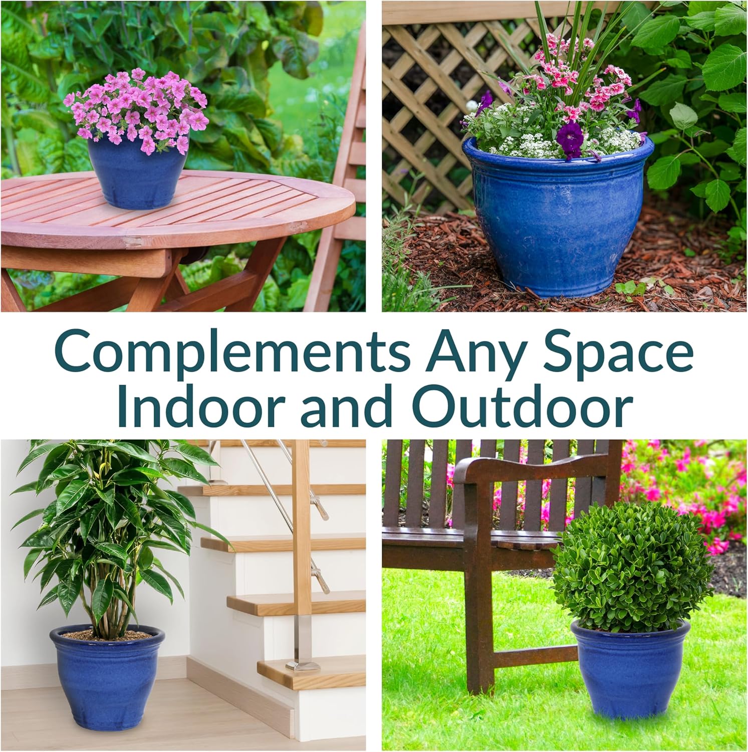 Sunnydaze Studio Large Ceramic Plant Pot - Round Outdoor Glazed Ceramic Planter Pot with Drainage - Imperial Blue - 14.5"
