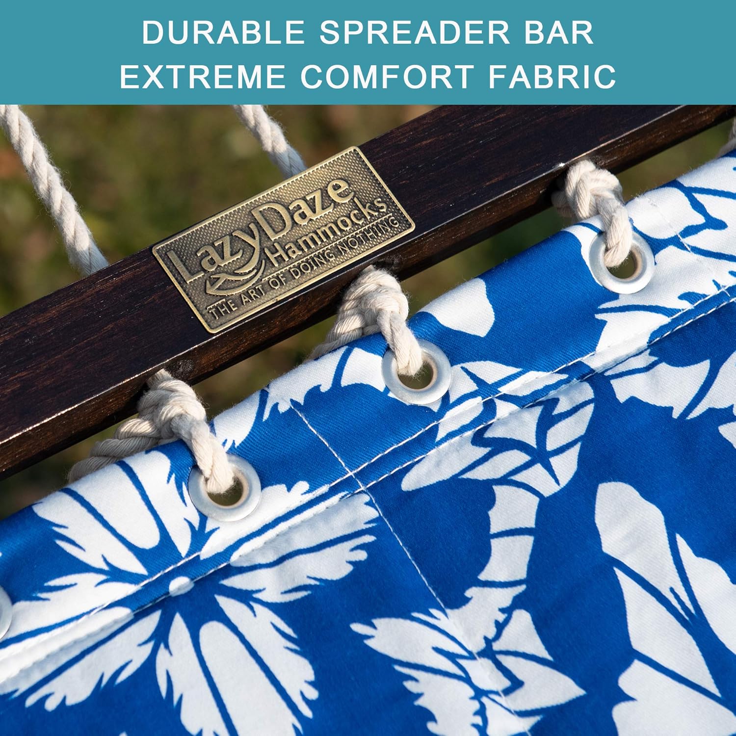 - 【Quilted Hammock】The double-layered quilted polyester with inner polyester padding and the polyethylene-stuffing head pillow offers you superior comfort. The 55-inch hardwood spreader bar is powder coated in an oil-rubbed finish, making it more stylish and stable. Handcrafted polyester ropes add character and authenticity, and thickness of the end cords contribute greatly to the balance and strength of the hammock.