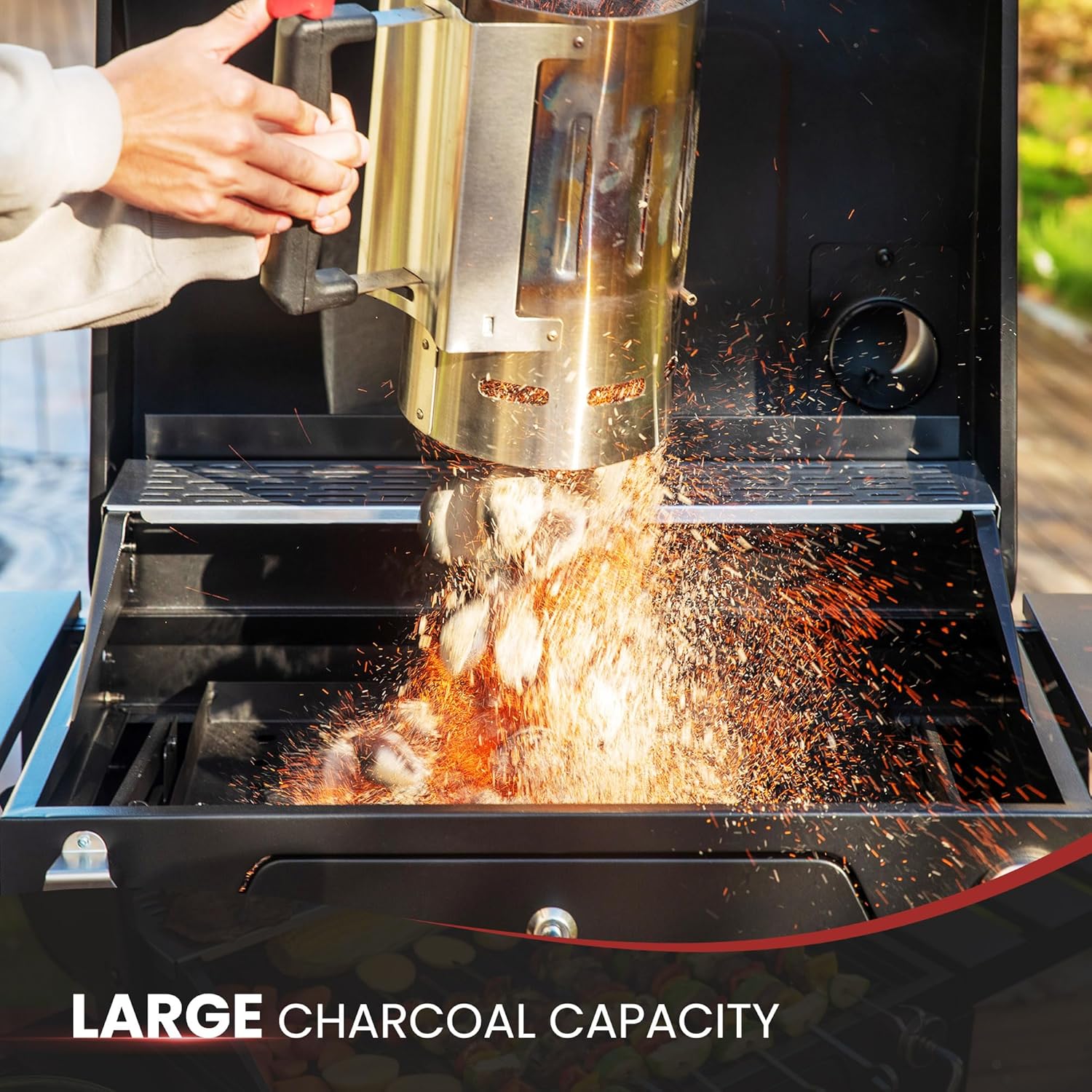 - Easy Charcoal Handling: This charcoal bbq grill has a front access door with a cool-touch handle, making it easy to add charcoal midway through the grilling process. It also boasts a large 4.5 lbs. charcoal capacity, meeting various grilling needs effortlessly