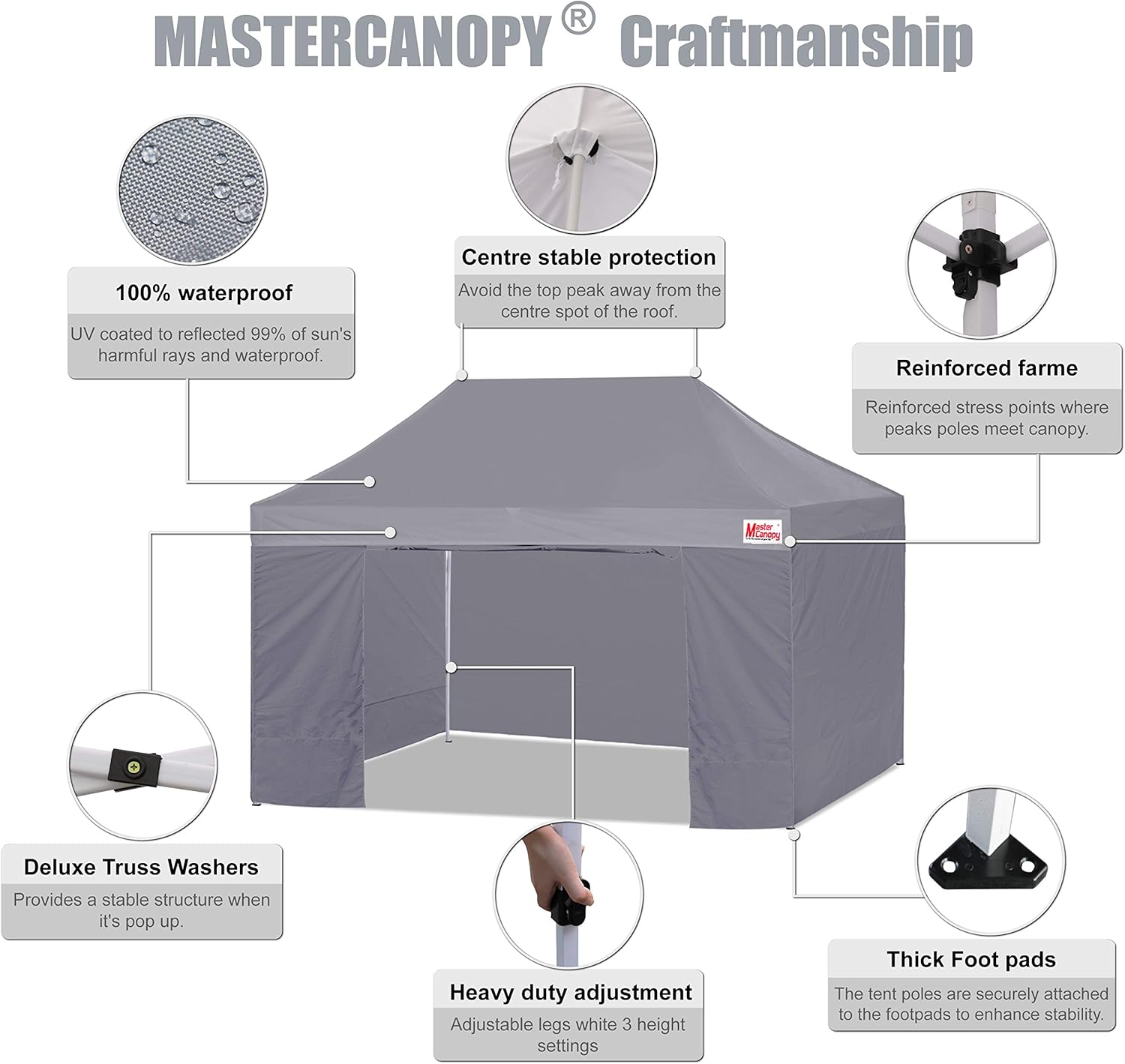 MASTERCANOPY Heavy Duty Pop-up Canopy Tent with Sidewalls (10x15,Gray)