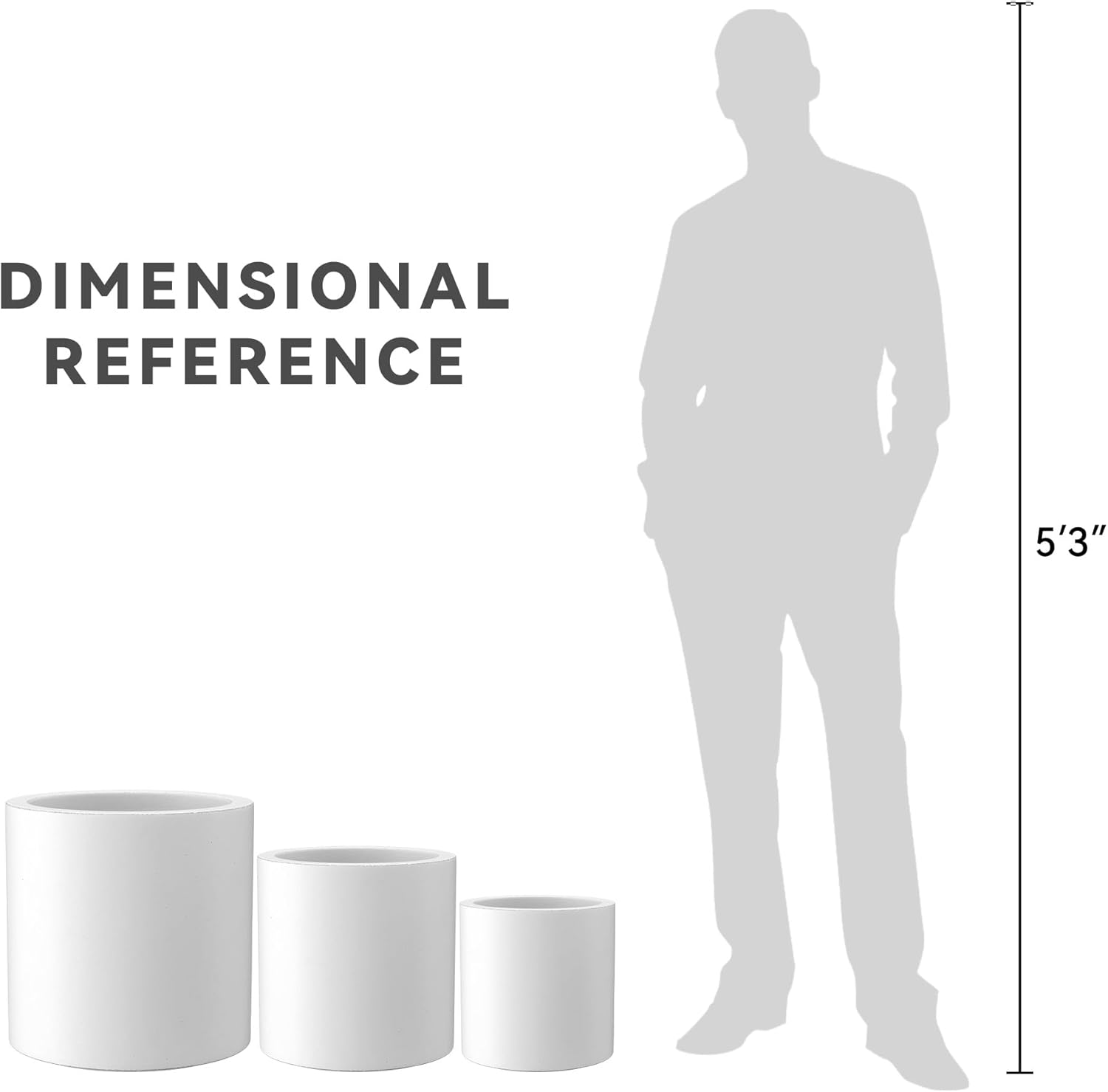 Kante RC0119ABC-C80011 Set of 3 Lightweight Concrete Modern Cylinder Outdoor Planters, 15.8, 12.9 and 9.8 Inch Diameter, Pure White