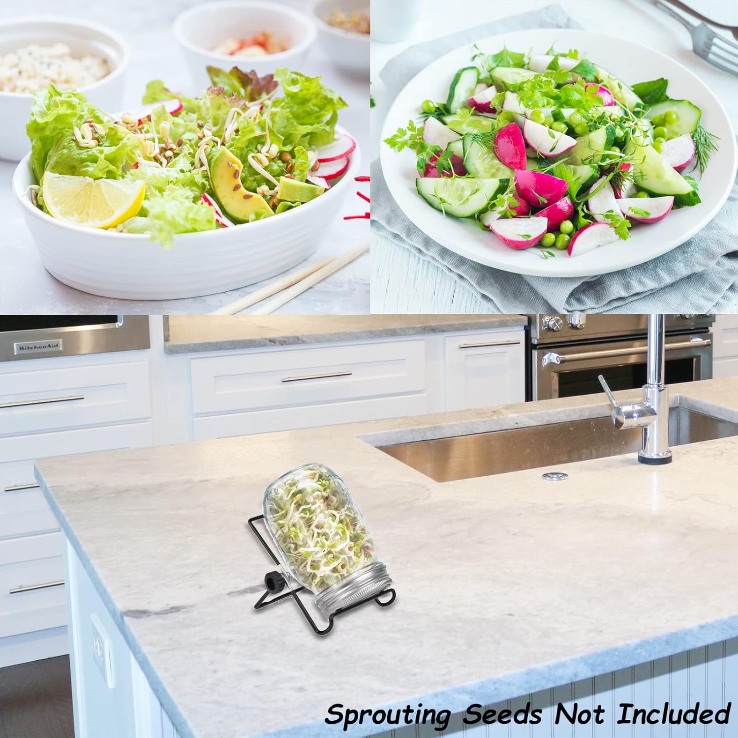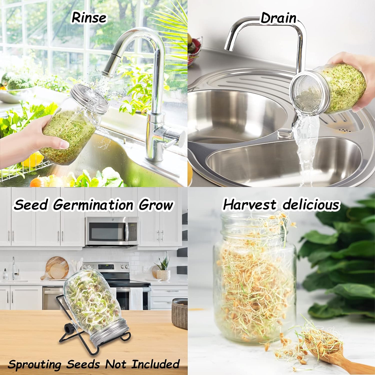 Sprouting Jar Kit, Wide Mouth Quart Mason Jars with Screen Sprout Lids & Stand, Seeds Germination Growing Kit, Seed Sprouter Set for Growing Organic Broccoli Alfalfa Mung Microgreens Bean (1Pack)