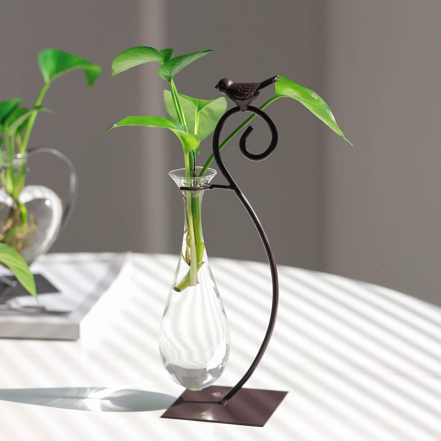 Marbrasse Desktop Glass Planter Hydroponics Vase,Planter Bulb Vase with Holder for Home Decoration,Modern Creative Bird Plant Terrarium Stand, Scindapsus Container (Water Drop Vase)