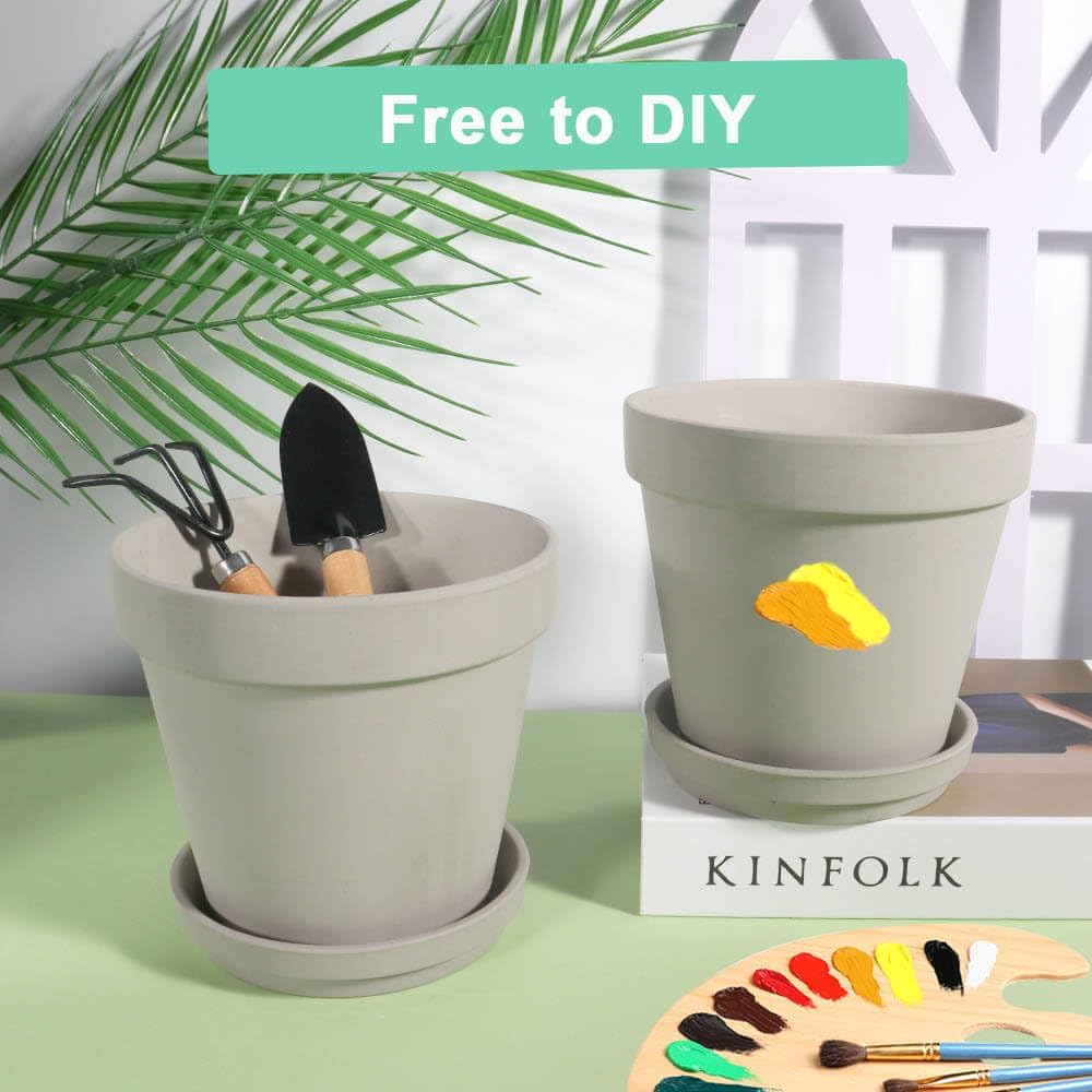 vensovo 6 Inch Grey Terracotta & Clay Pots for Plant with Saucer - 4 Pack Medium Terra Cotta Planter with Drainage Hole, Flowerpot for Indoor Outdoor Plants, Crafts, Wedding Favor