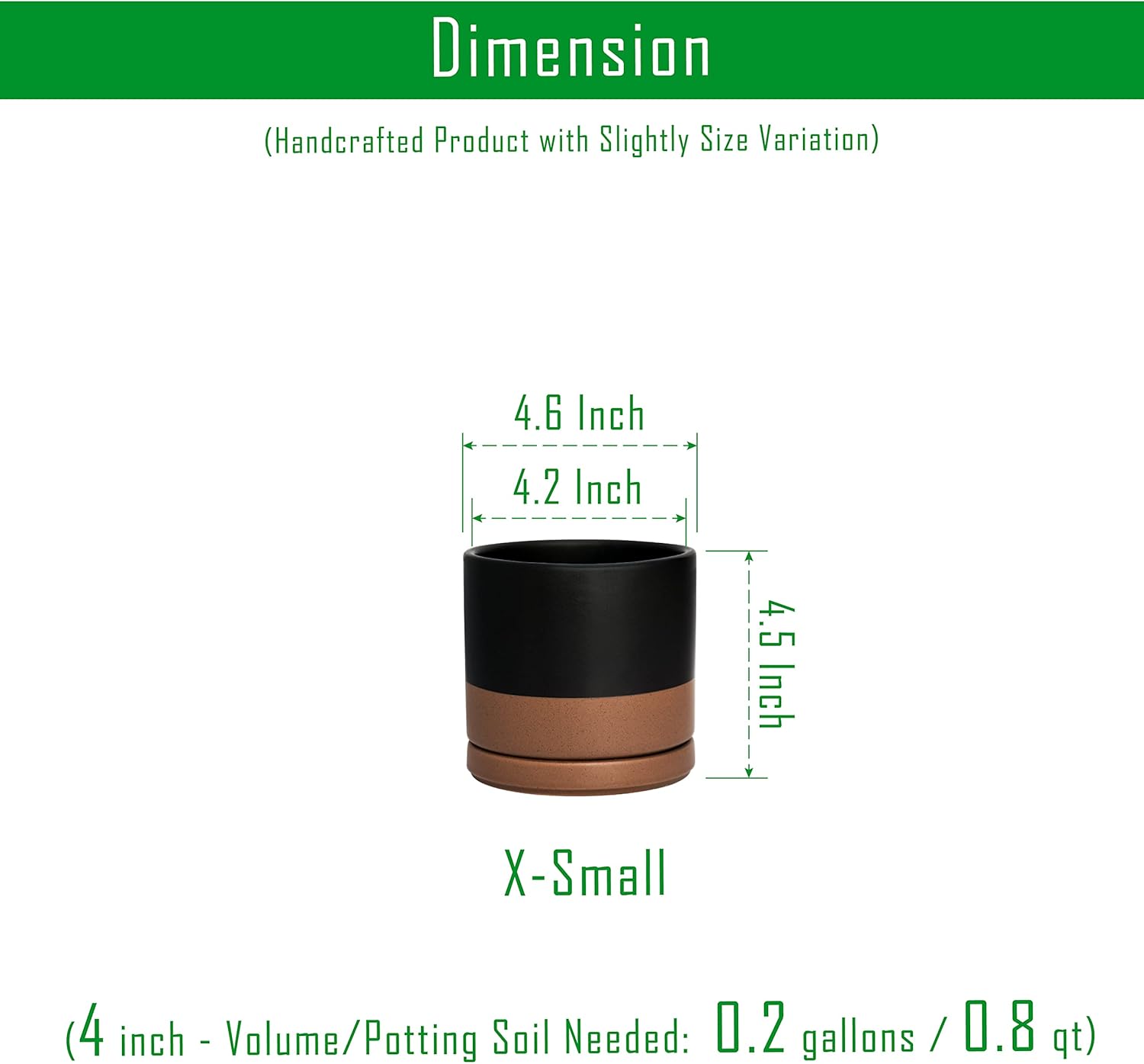 - Pack of 2 Planter Pots - 4.6" Diameter (4.2" Inner Diameter) * 4.5" Height. Potting Soil Needed≈ 0.2 Gallon / 0.8 qt.
