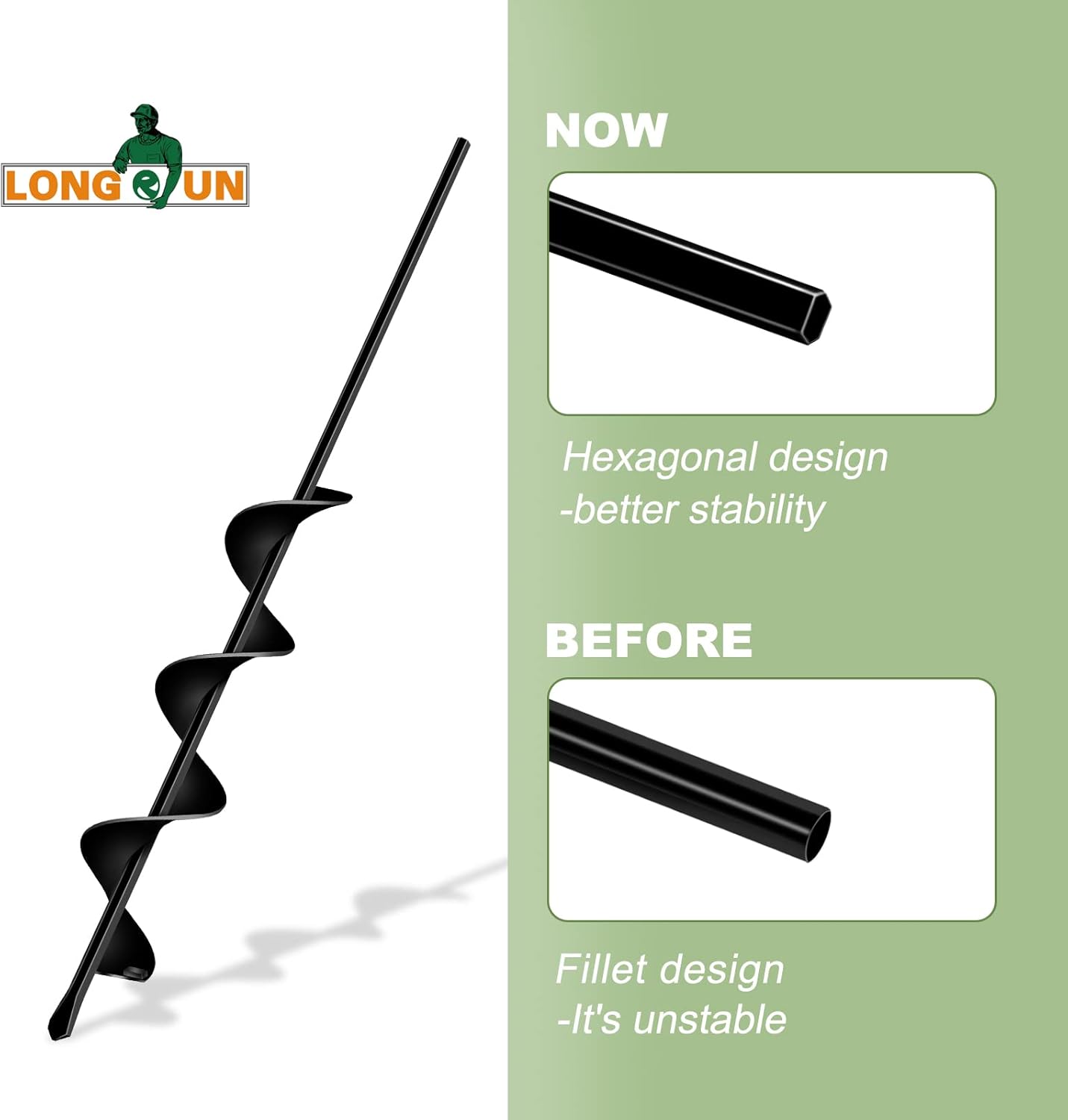 - 【Alloy Steel Blade Design】LONGRUN’s garden auger bit comes with an alloy steel blade, which is the biggest difference from other products. It can impact some hard roots and some small rocks during use.