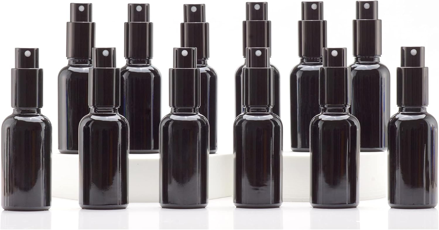 - [Small Glass Spray Bottles 1oz] the essential oil spray bottle is black, to protect the essential oil from UV rays.Made from high quality glass.BPA FREE.Refillable, washable and travel friendly. fine mist.