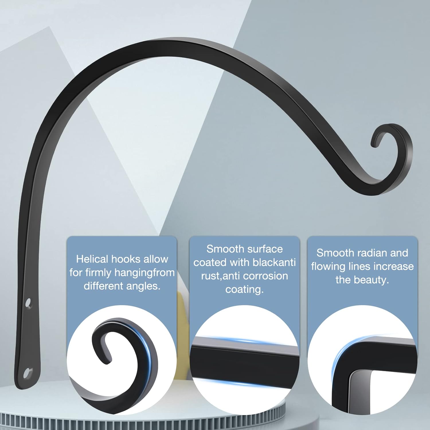 - 【Appearance & Technology】The hanging plant brackets adopt high-quality forging technology, with long and smooth lines. The C-shaped curve shape and black coating give them an elegant and retro feeling, which will make your courtyard more beautiful and charming. The black appearance of the wall plant hanger not only matches well with the wall, but also with the hanging decorations