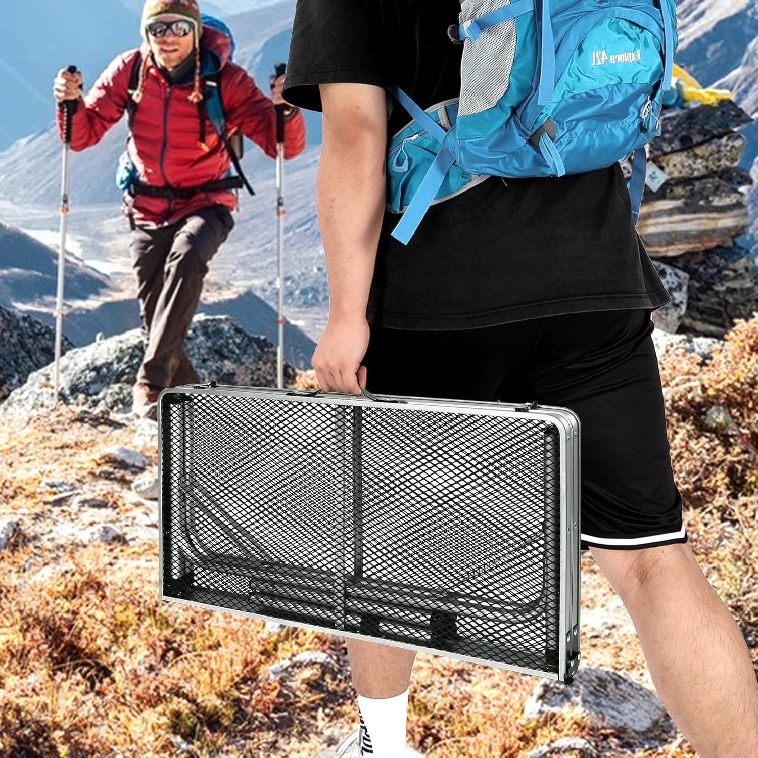 - ★Premium Material&Design: This aluminum grill table is made of powder coating iron mesh (table top) and thicker aluminum alloy frame (Diameter 25mm). It also has X-shape side support and secure latch to ensure stable use.