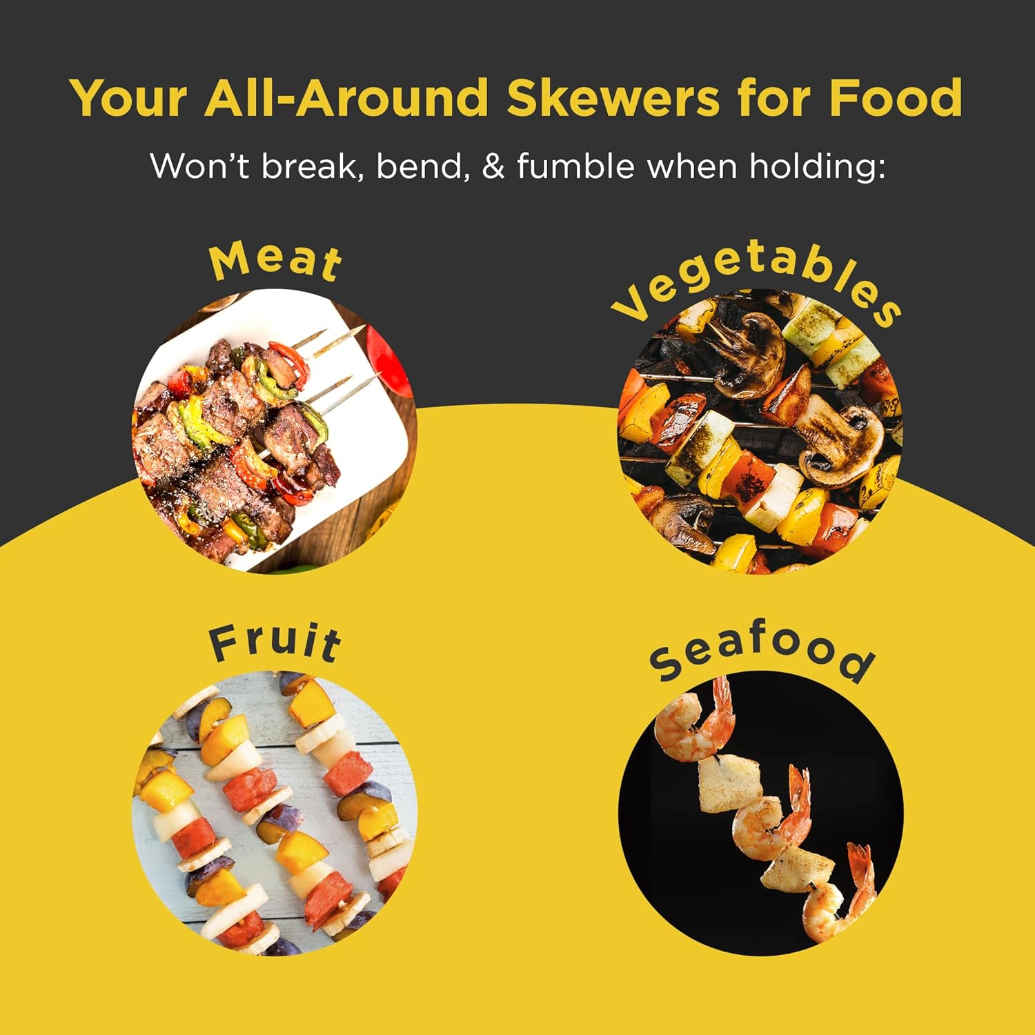 - STAINLESS STEEL BBQ SKEWERS FOR DURABILITY: O-Yaki’s metal skewers are made from durable stainless steel, ensuring they are resistant to rust and can withstand repeated use. These sturdy BBQ skewers won’t bend or break, providing a consistent grilling experience for meats, veggies, seafood, and more.
