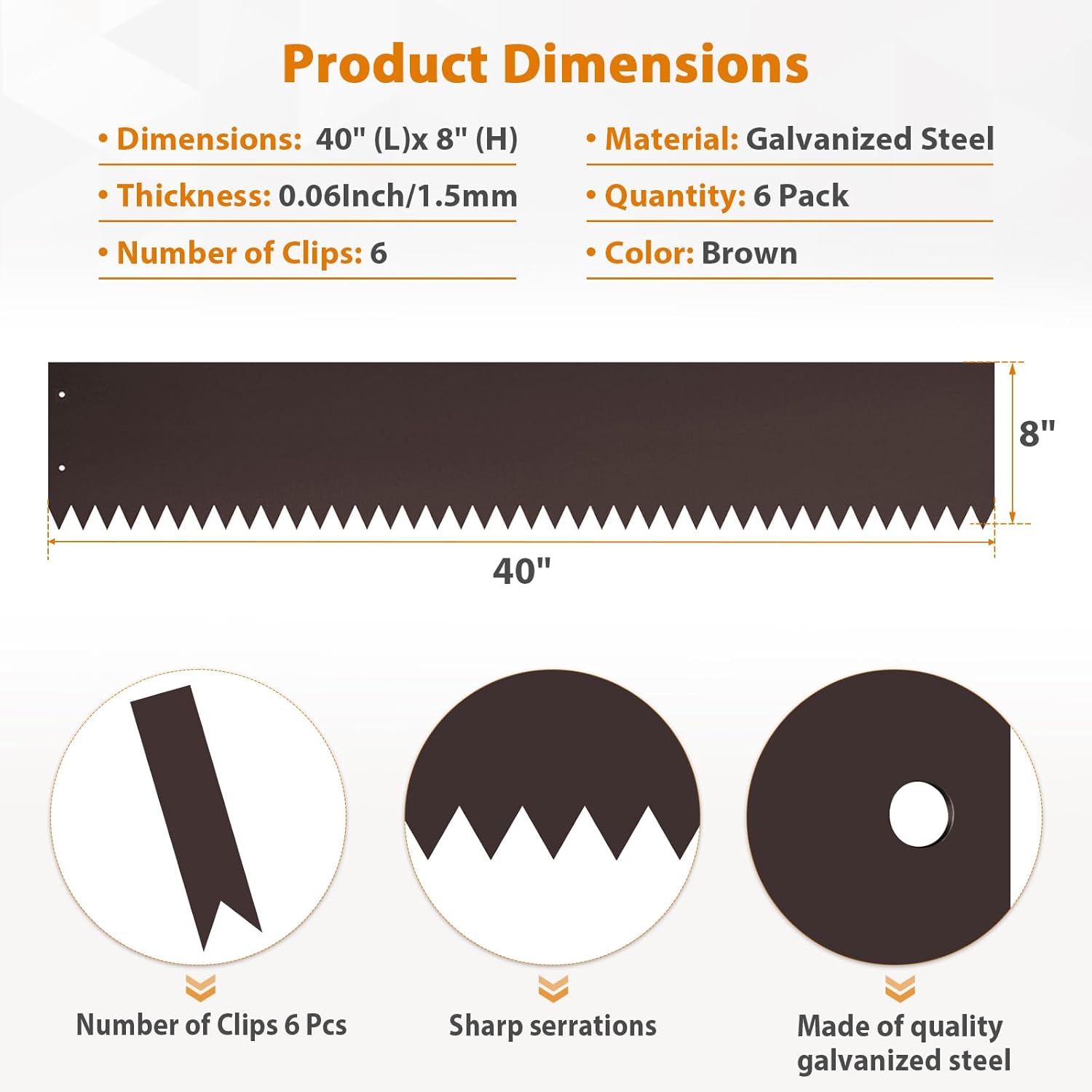 40" L x 8" H Metal Landscape Edging, Heavy Duty Galvanized Steel Garden Edging,6 Pack Steel Landscape Edging with Clips for Lawn, Flower Bed, Yard (Brown)