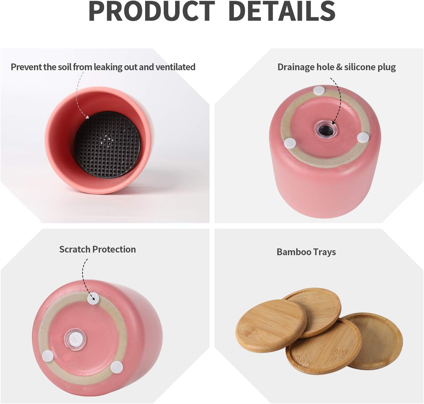 - Planter Size - The planter pot measuring in 4''(width) x 3.7''(height). Attached 4 saucers, 4 round bonsai bottom grid mats. (Plants not included).