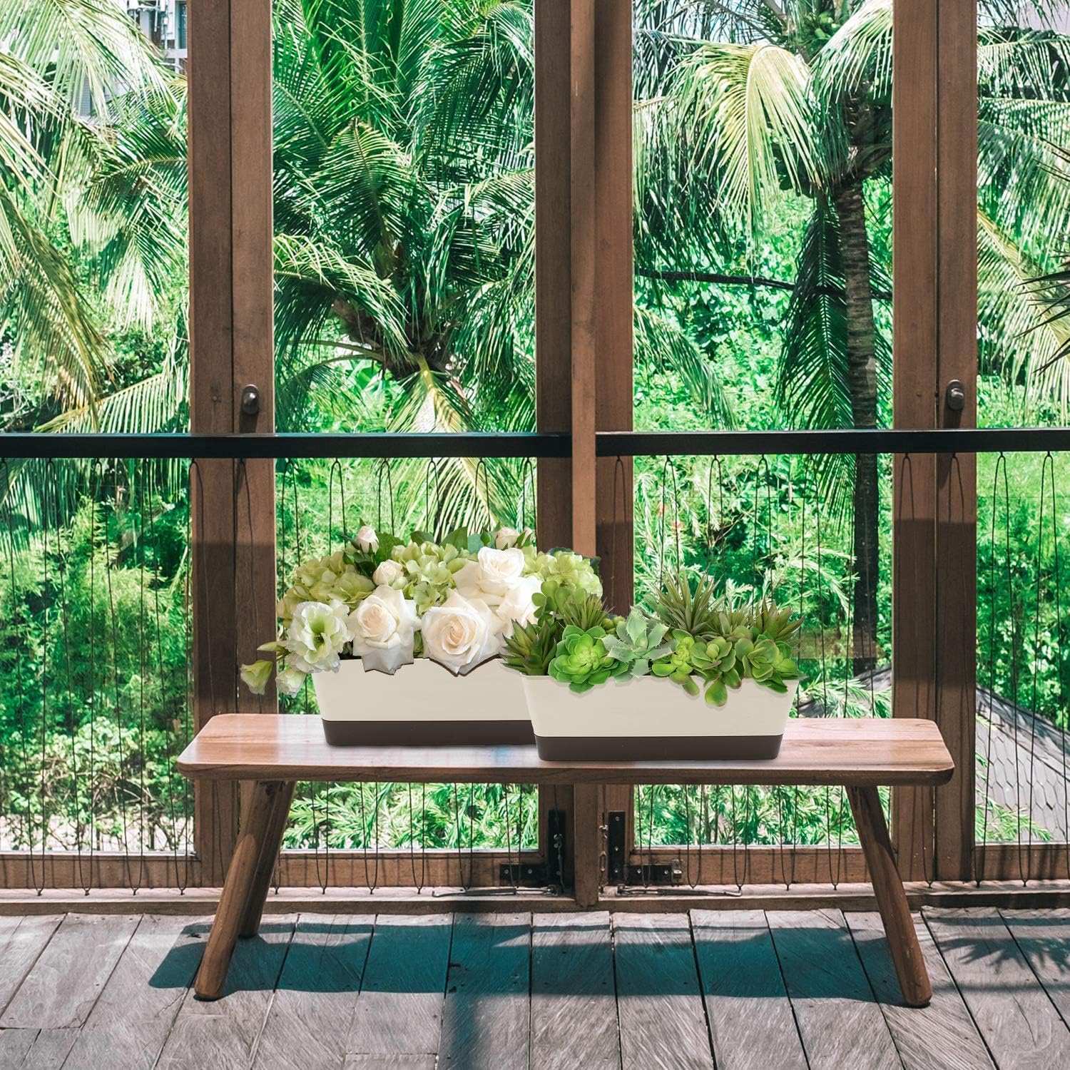 - Lightweight, Simple and Decorative- Each rectangle planter measures 12 x 3.8 x 3.3", and the saucer measures approx. 11.2 x 3 x 1.2". These window flower boxes are perfect for planting vegetables, succulents, cactus, herbs, flowers and more. Beige color can match any home decor perfectly, these succulent planters are great for placing at indoors and outdoors