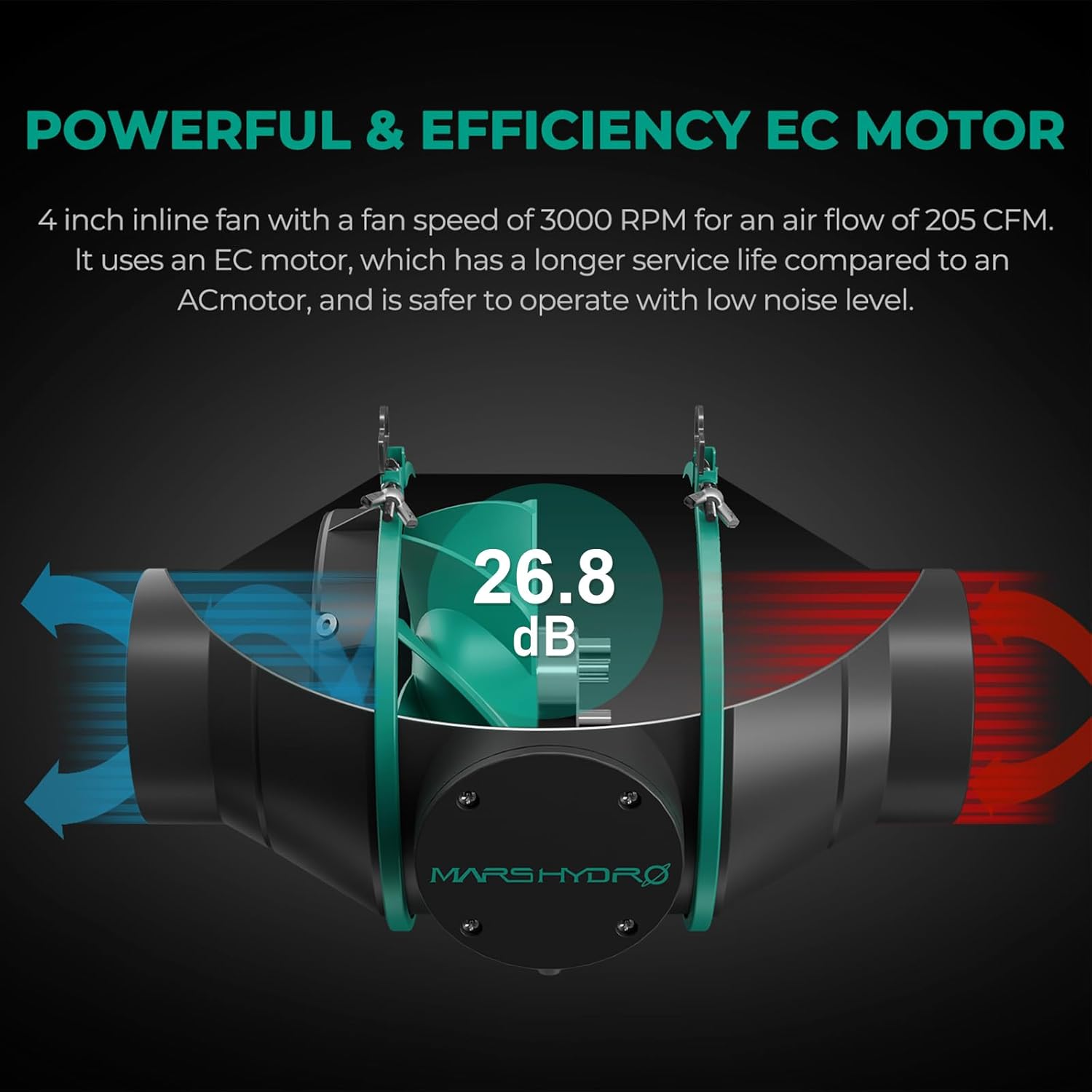 - 【205CFM ADJUSTABLE&EFFICIENT VENTILATION SYSTEM】The inline fan blades have a mixed flow design to provide active air to your growing space, the fan runs at 2600 RPM,adjustable speed from 0 to 100%,and provides 205CFM of airflow. Only 26.8 dB noise. 1050+ RC 48 Australian Virgin Charcoal with 25ft length flex ducting,effectively filters impurities and odors in the air.