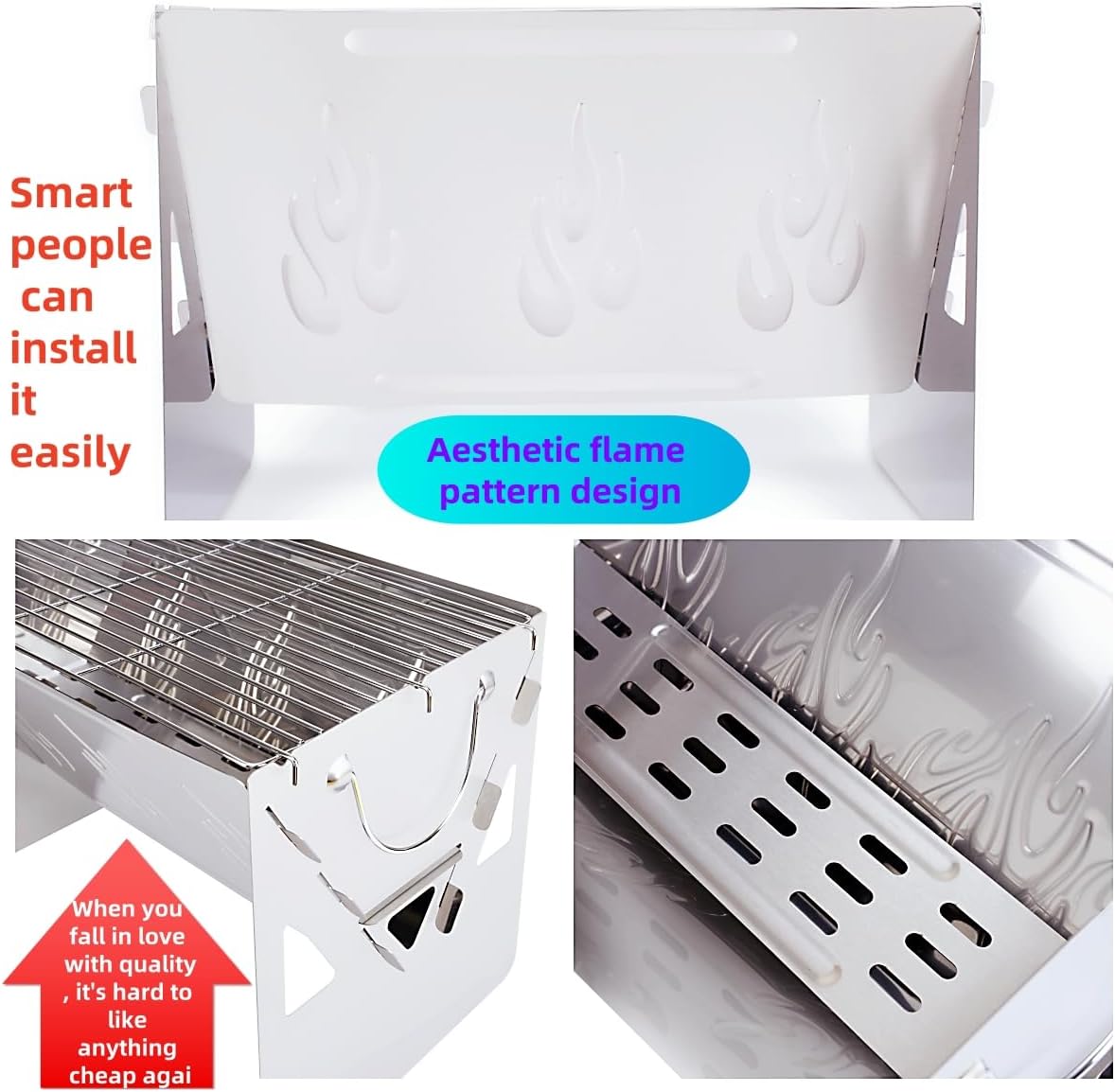 - Premium stainless steel small grill: This product is meticulously crafted from stainless steel, featuring a smooth surface that resists oil adhesion and is easy to clean. The stainless steel material is also resistant to high temperatures and corrosion. The surface is etched with flame patterns, adding to its aesthetic appeal.