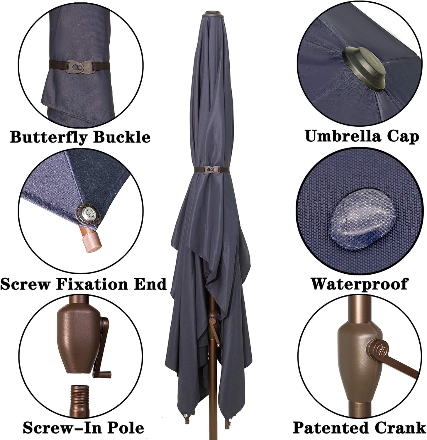 - Easy to Use:Patented crank design, easy to operate and use, just shake the crank to open and close the umbrella, you can also tilt it by pressing the button to prevent sunlight from different angles.