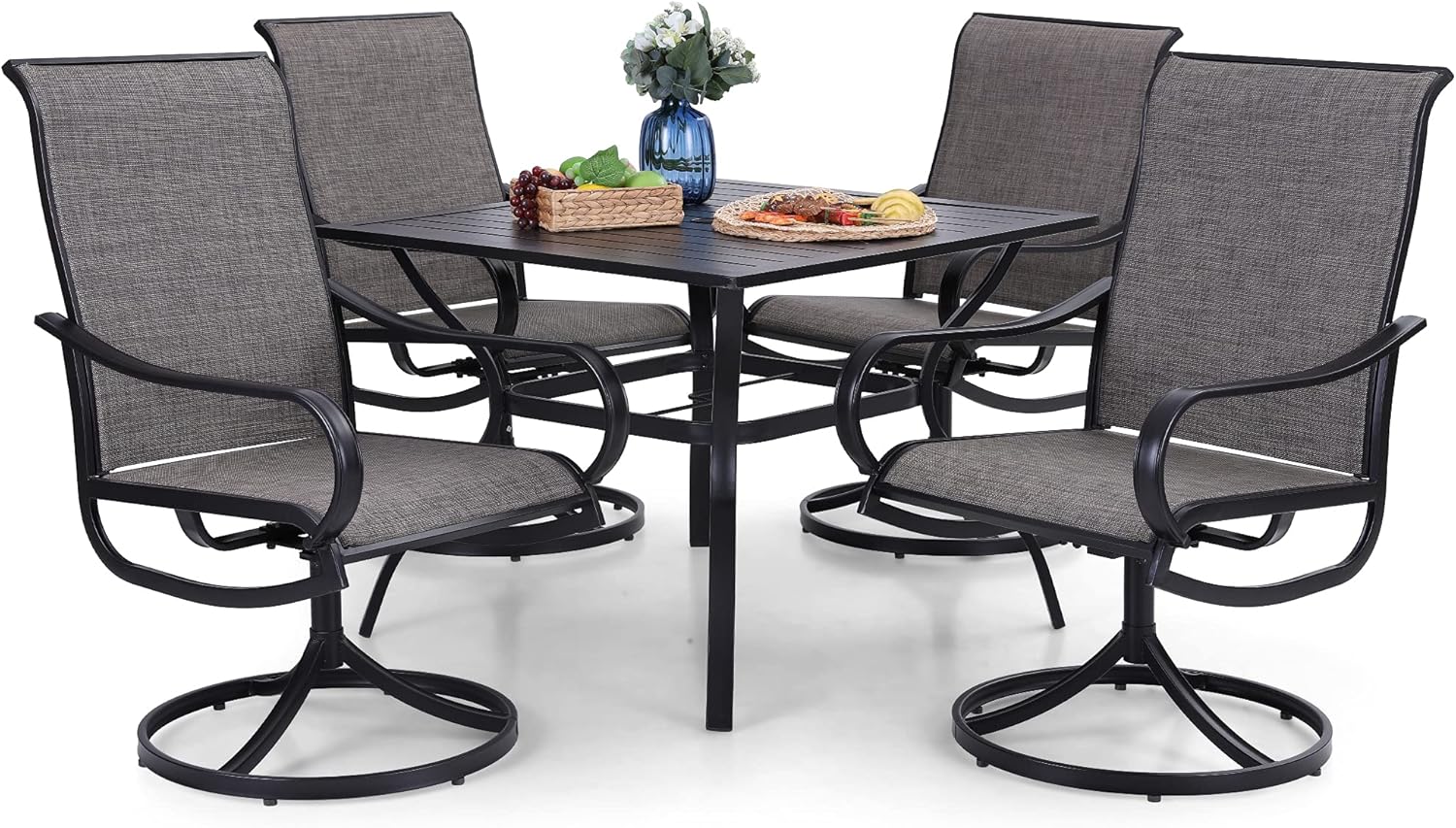 PHI VILLA 5 Piece Patio Dining Set Clearance with 4 Swivel Dining Chairs & 1 Square Metal Dining Table with 1.57 inches Hole, for Outdoor Kitchen Lawn & Garden Black Coated