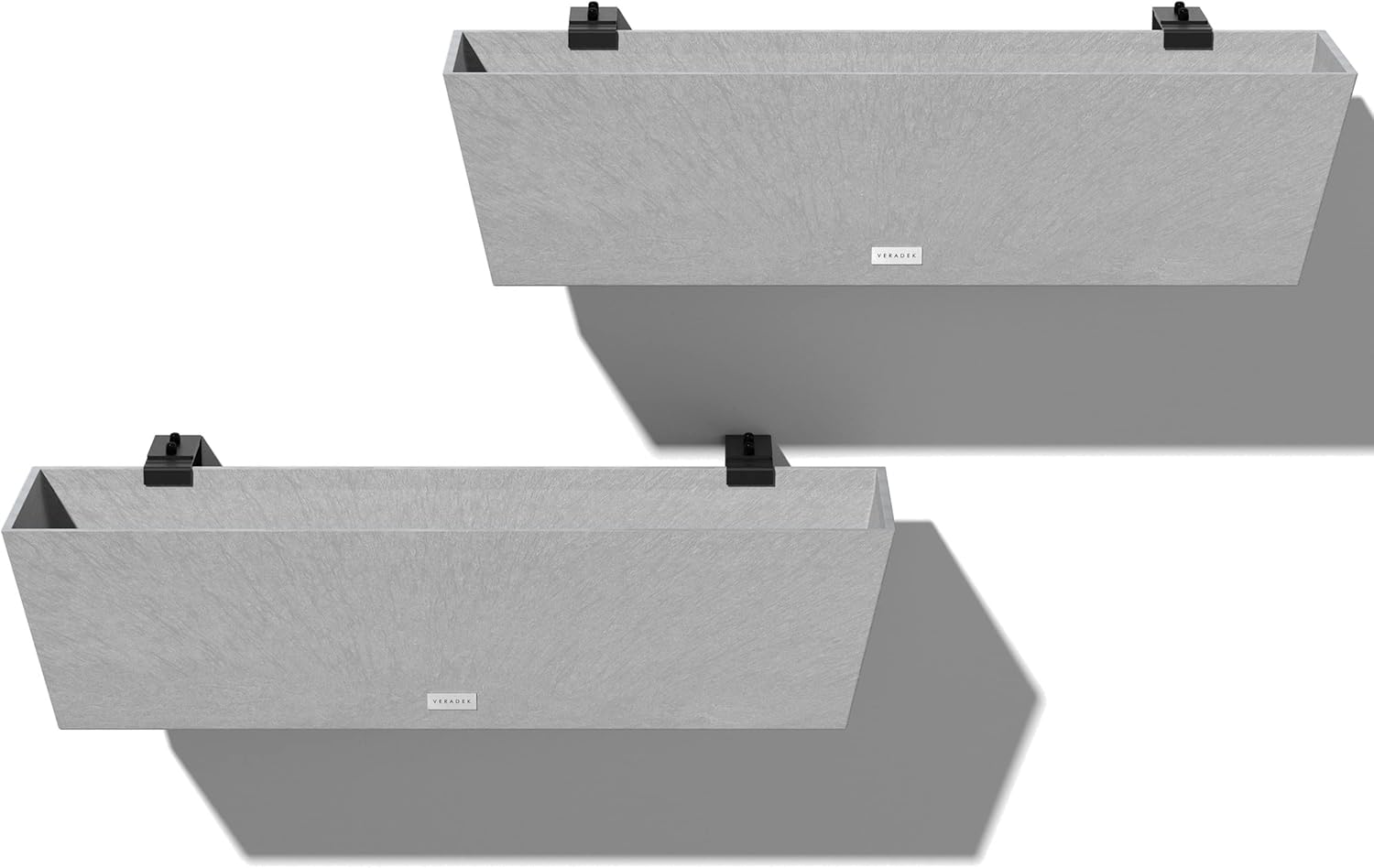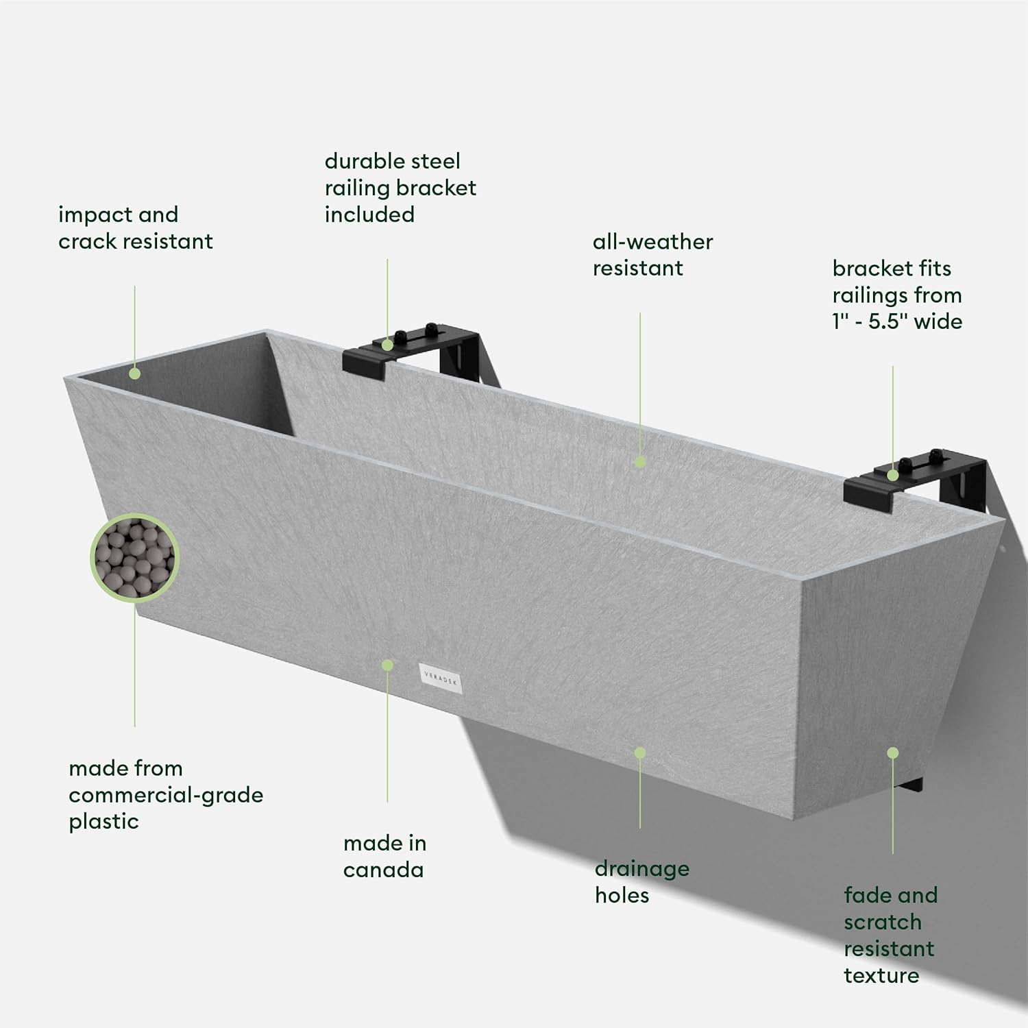 Veradek Pure Series Railing Planter - Plastic Hanging Planter for Outdoor Balcony/Fence | Durable All-Weather Use with Adjustable Brackets | Modern Décor for Flowers, Succulents, Hanging Plants