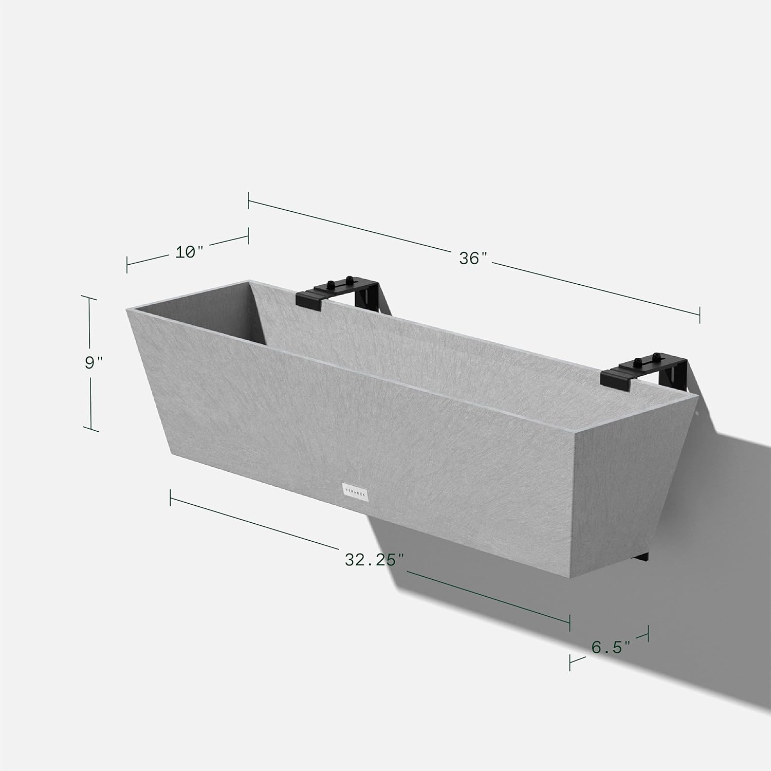 - DIMENSIONS & DETAILS: The Railing planter measures 9” in Height, 10” in Width, 36” in Length. It comes fully assembled for easy use, so you can start planting right away