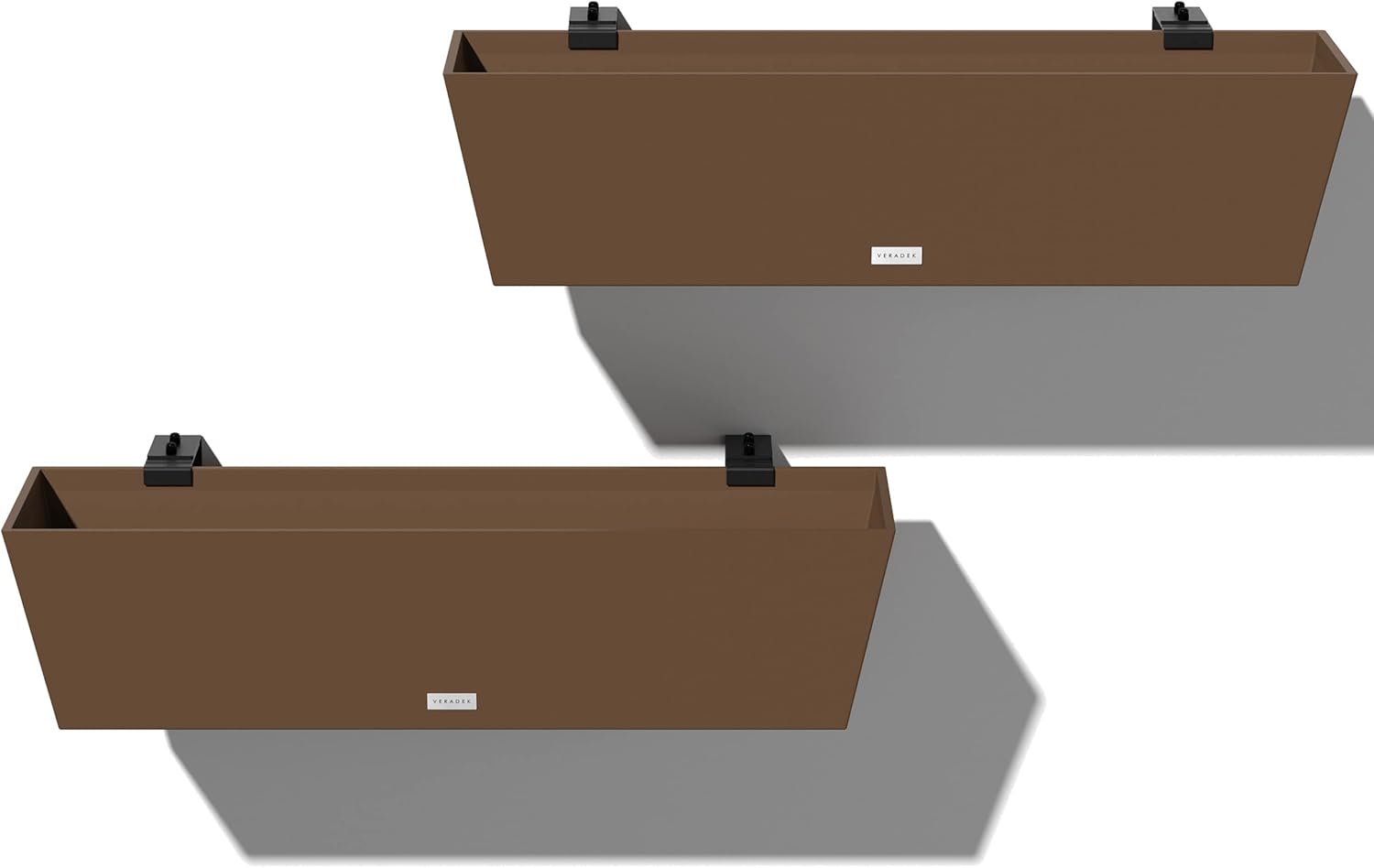Veradek Pure Series Railing Planter - Plastic Hanging Planter for Outdoor Balcony/Fence | Durable All-Weather Use with Adjustable Brackets | Modern Décor for Flowers, Succulents, Hanging Plants
