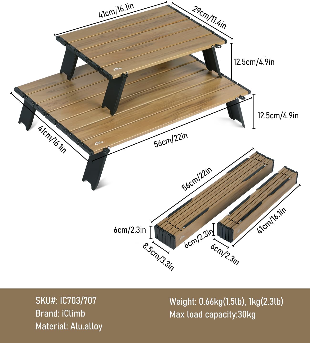 iClimb Ultralight Compact Mini Beach Picnic Folding Alu. Table with Carry Bag, Two Size (Nature - L)