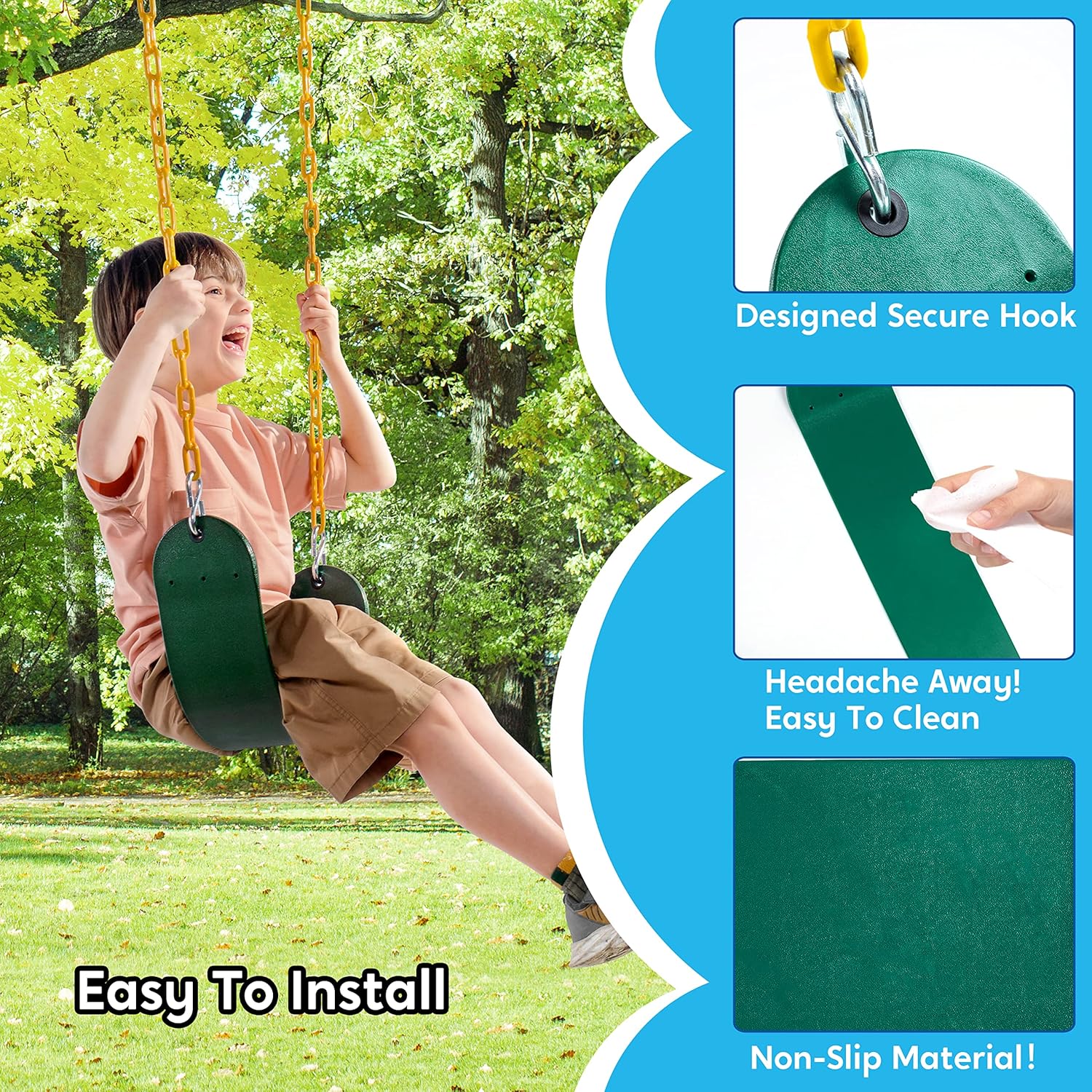 TURFEE 3 Pack Green Swing Seats Heavy Duty with 66" Chain, Swing Set Accessories Replacement with Snap Hooks for Kids Outdoor Play Playground, Trees, Backyard (Limit 300lb)