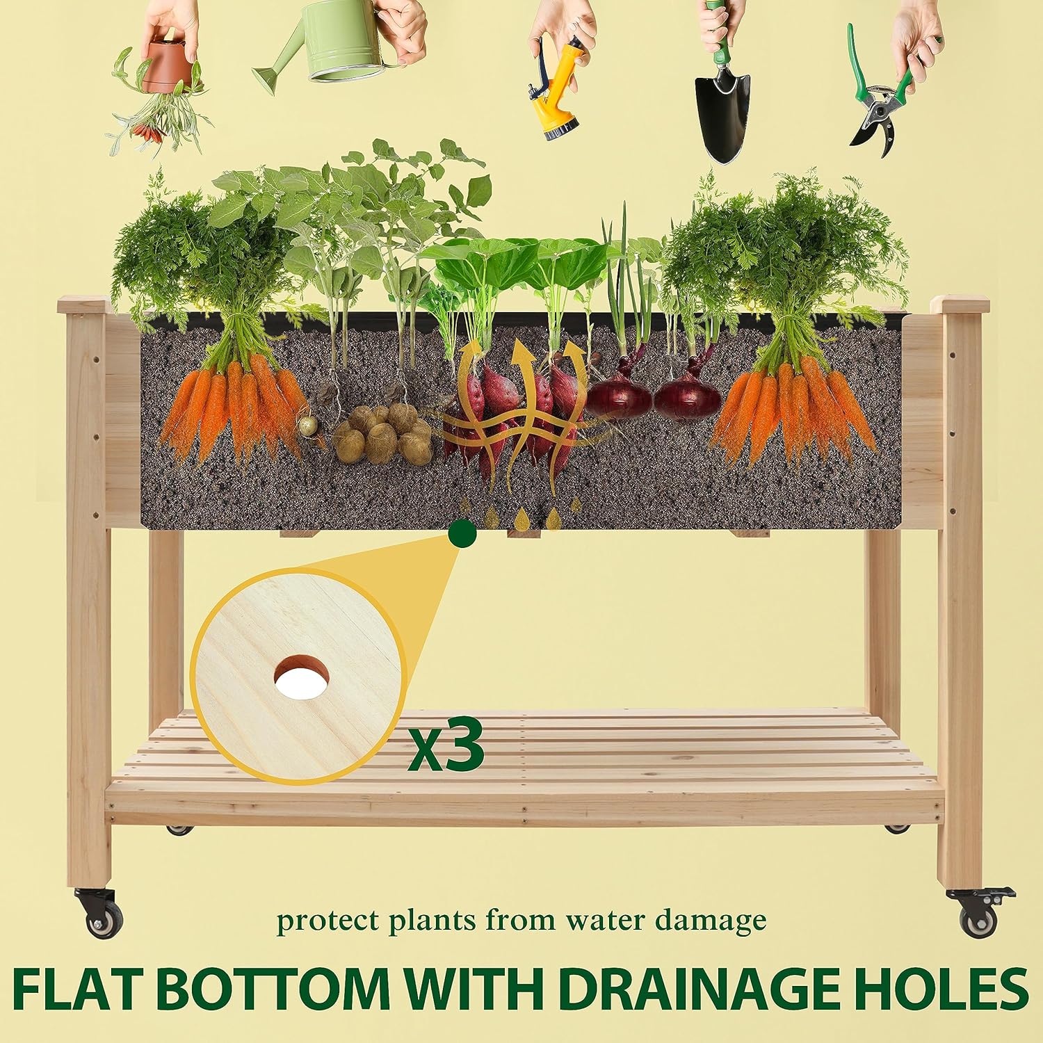 MUPATER 4x2FT Raised Garden Bed, Planter Box with Four Wheels and Legs for Herbs and Vegetables, Elevated Garden Bed with Drainage Holes for Outdoor Indoor, Natural Wood