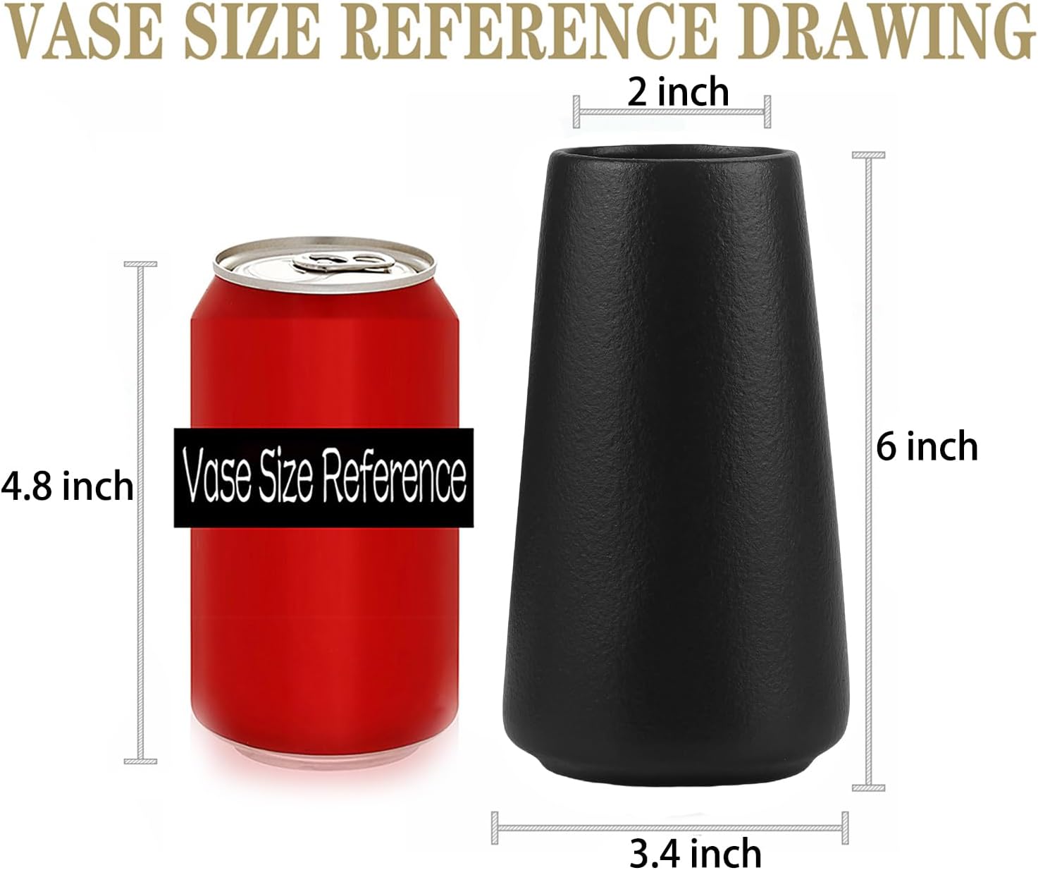 Simple Vase for Flowers Plants, Matte Vases for Modern Table Shelf Home Decor Wedding Boho Decor, 6" H Frosted Elegant Ceramic Vase for Pampas Grass Fluffy Stem Bouquet Lavender Flowers (Black, 1)