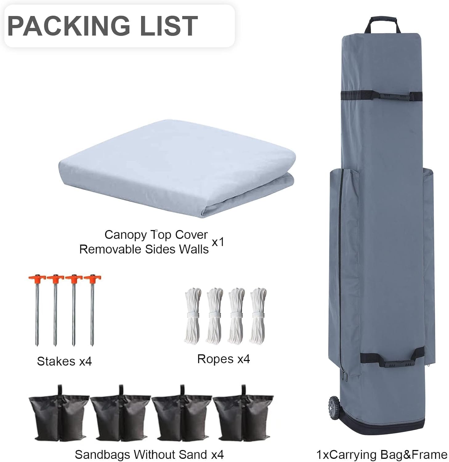 - 👍Packing List:1 10x15 Pop Up Canopy Top Cover and Canopy Frame + 1 15ft-Removable Side Walls + 1 15ft-Door Walls + 4 5ft-Side Walls + 1 Carrying Bag + 4 Sand Bags without sand + 4 stakes and ropes.