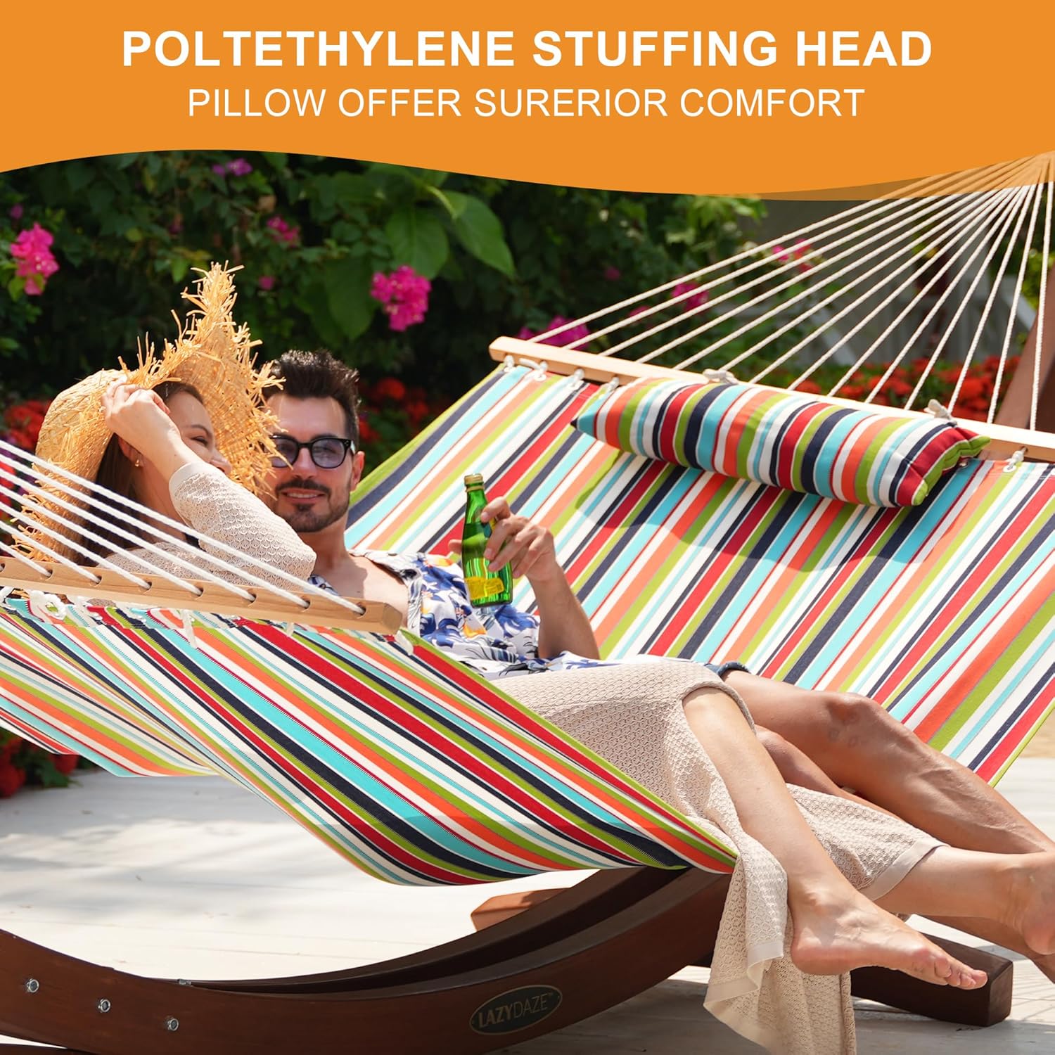 Lazy Daze 12 FT Sunbrella Fabric Hammock with Spreader Bars and Free Pillow Fits for Two Persons, All Weather and Fade Resistant for Patio Yard, 450 lbs Weight Capacity, Carousel Confetti