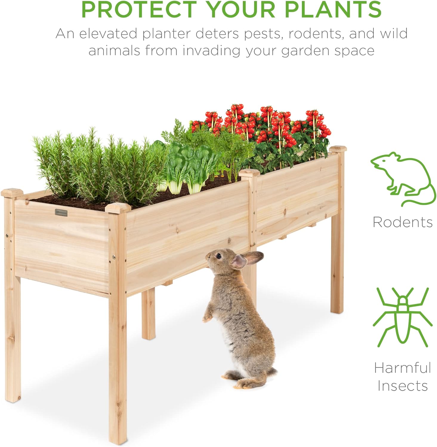 Best Choice Products 72x24x30in Raised Garden Bed, Elevated Wood Planter Box Stand for Backyard, Patio, Balcony w/Divider Panel, 6 Legs, 300lb Capacity - Natural