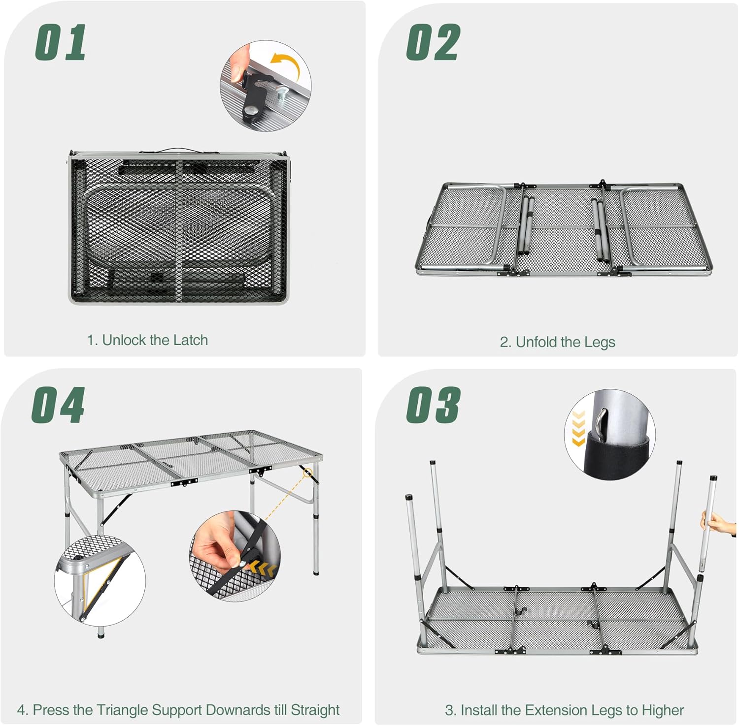 - 2 Adjustable Heights: RedSwing Aluminum Folding Grill Table is 48"x24"/122cmx61cm, height is 15"/38cm in low, 28"/71cm in high. Pack size is 24"x4"x16"/60cmx10cmx40cm when folded.
