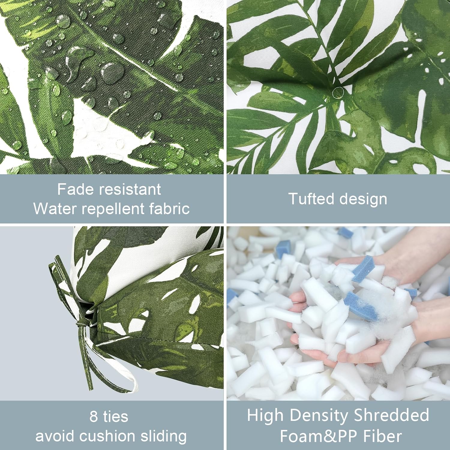 LVTXIII Outdoor Seat/Back Chair Cushion Patio Tufted High Back Cushion, Seasonal Replacement Rocking Chair Cushion with Ties (22” W x 20D”, Set of 2, Palm Green)