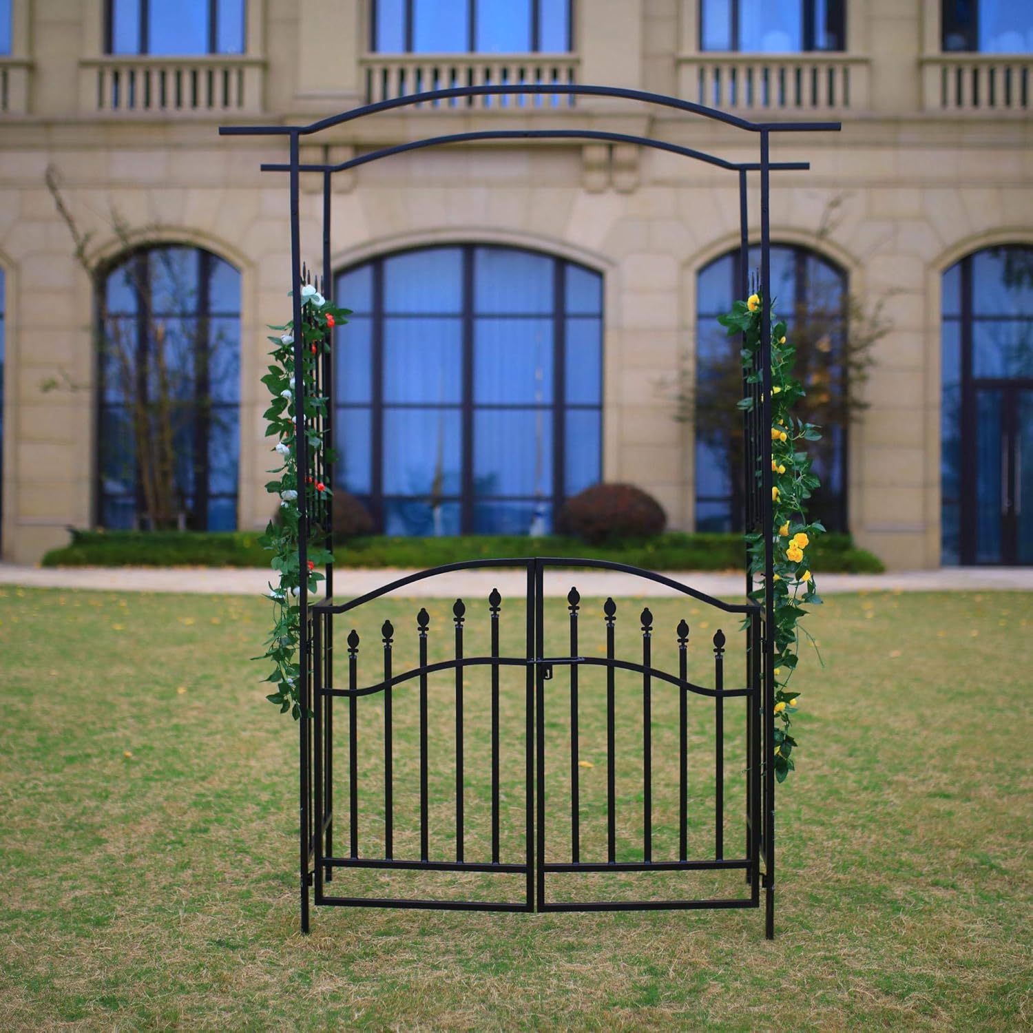 Steel Garden Arch with Gate, 6'8" High x 4'11" Wide, Garden Arbor for Various Climbing Plant, Outdoor Garden Lawn Backyard