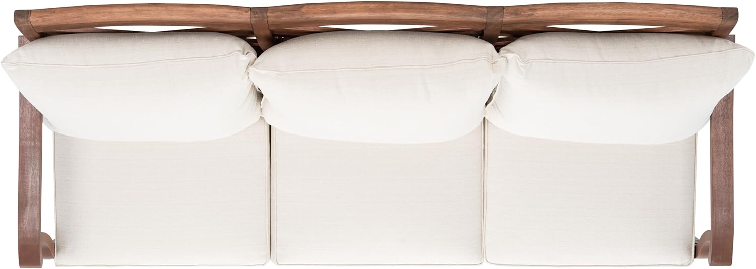 SAFAVIEH Couture Home Collection Payden Natural Wood/Beige Cushion 3-Seat Outdoor Patio Sunroom Porch Backyard Veranda Sofa