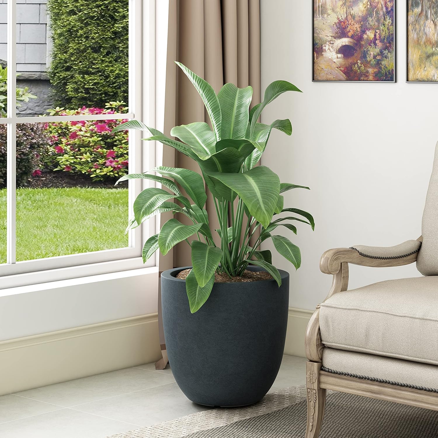 - Large & Versatile - Whether showcasing a plant indoors or placed on the front steps, porch, or patio, this spacious planter seamlessly integrates into modern, minimalist, and traditional decor with its distinctive style.